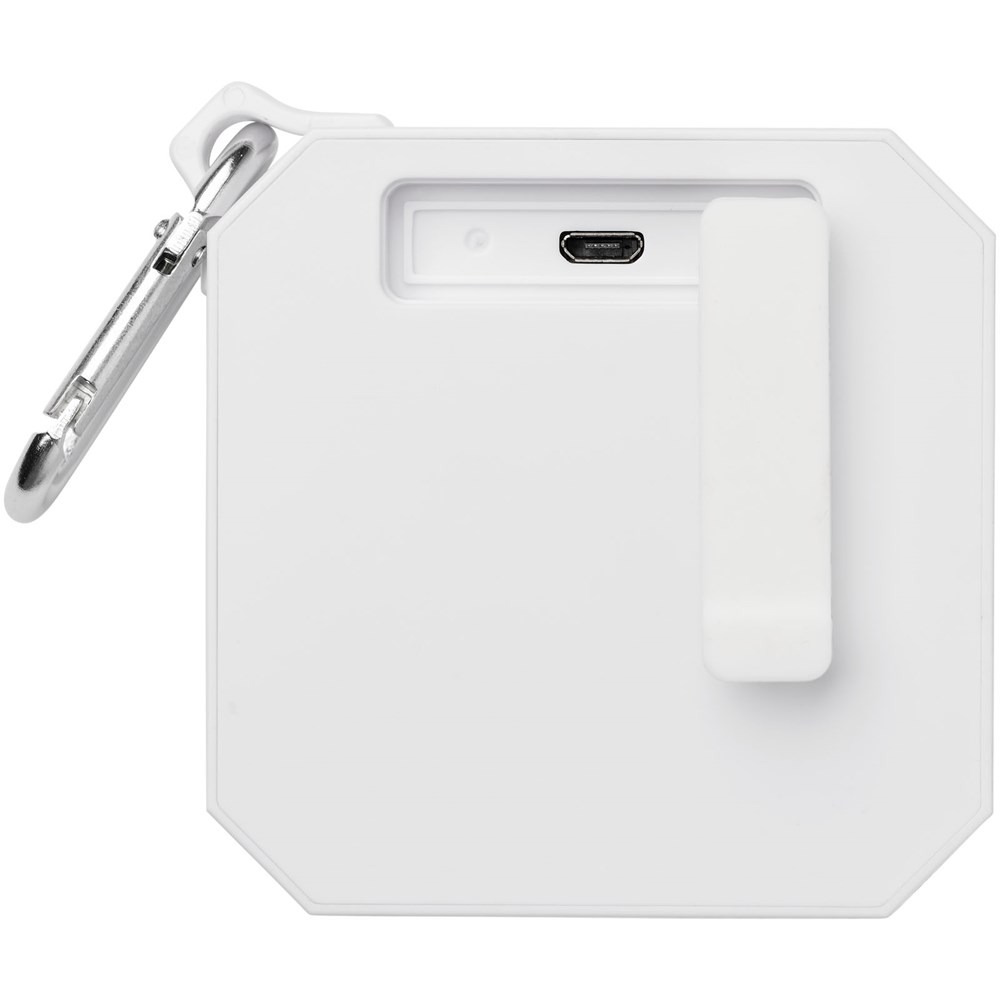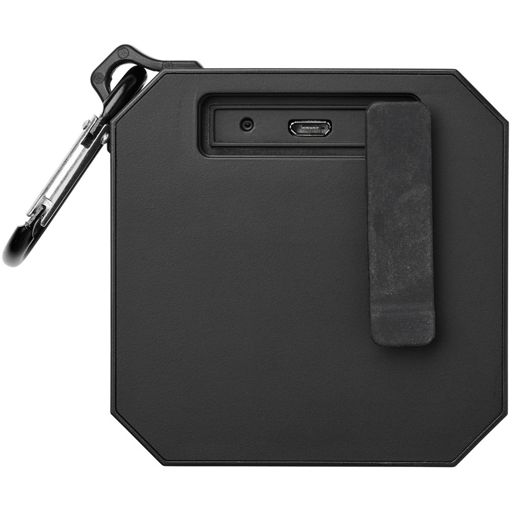 De Blackwater Bluetooth® speaker voor buitenshuis is een must-have voor iedereen die van het buitenleven houdt. De 3W-speaker biedt een uitstekende geluidskwaliteit en met een waterdichtheidsniveau van IPX6 hoef je je geen zorgen te maken dat de speaker beschadigd raakt wanneer deze nat wordt. Er zit ook een karabijnhaak (niet geschikt voor klimmen) bij, wat de speaker zeer geschikt maakt voor op reis. De afspeeltijd op maximaal volume is 2 uur. Ingebouwde muziekbediening en een microfoon voor handsfree bellen. Inclusief micro-USB-oplaadkabel. Bluetooth® bereik is 10 meter (33ft) met Bluetooth® versie 5.0.