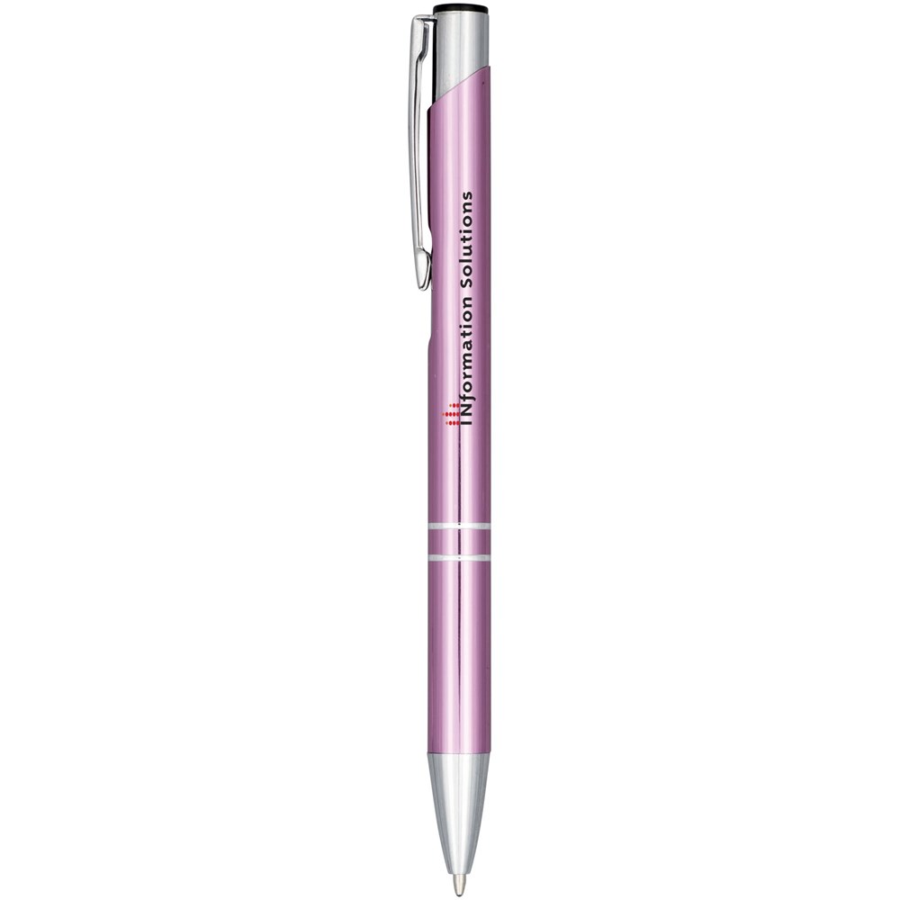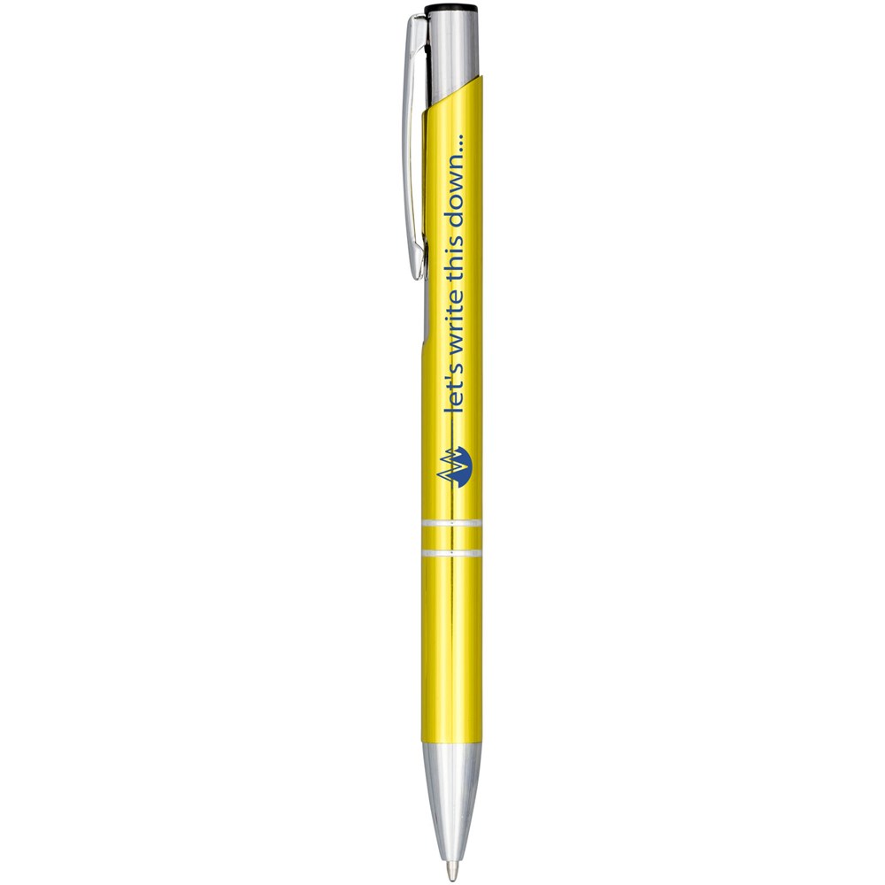 Balpen met klikmechanisme, aluminium huls, ABS-onderdelen en een stalen clip. De pen is verkrijgbaar in veel verschillende kleuren en heeft een geanodiseerde afwerking die hem een prachtige glans geeft. Het uitgebreide en populaire Moneta-assortiment is verkrijgbaar in vele verschillende stijlen en afwerkingen.