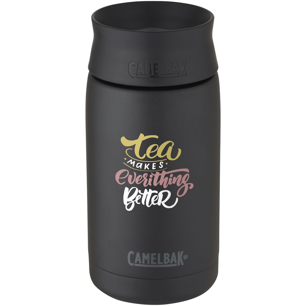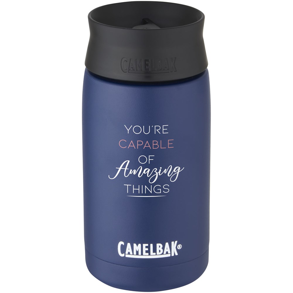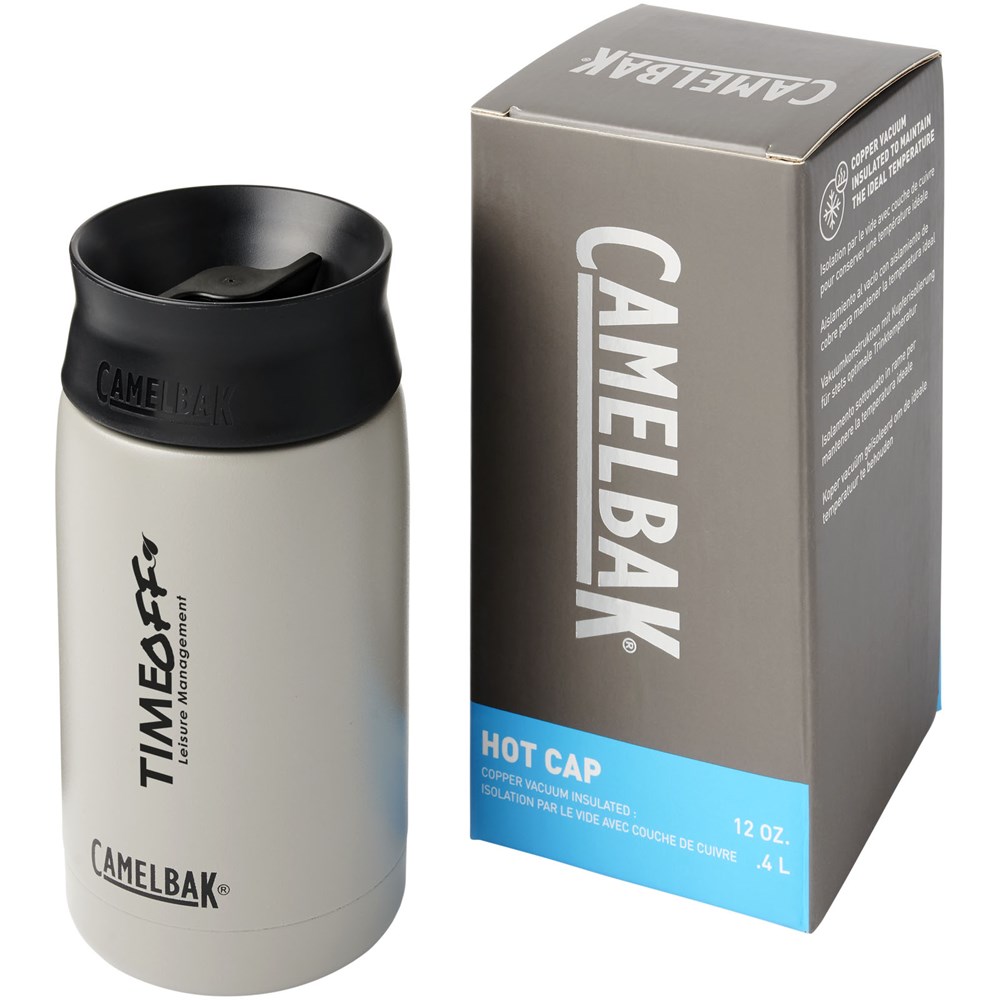 Duurzame, dubbelwandige roestvrijstalen vacuüm constructie met koperen isolatie, waarmee je drankje gedurende 24 uur koud blijft of ten minste 8 uur warm. De constructie voorkomt ook condensatie aan de buitenkant van de beker. Schroefdeksel met een lekvrije draaidop voor 360º drinken. Brede opening voor gemakkelijk reinigen en vullen. Trendy, duurzame poedercoating. De capaciteit is 350ml. Gepresenteerd in een exclusieve CamelBak geschenkverpakking. Levenslange garantie op fabricagefouten met Got Your Bak™.