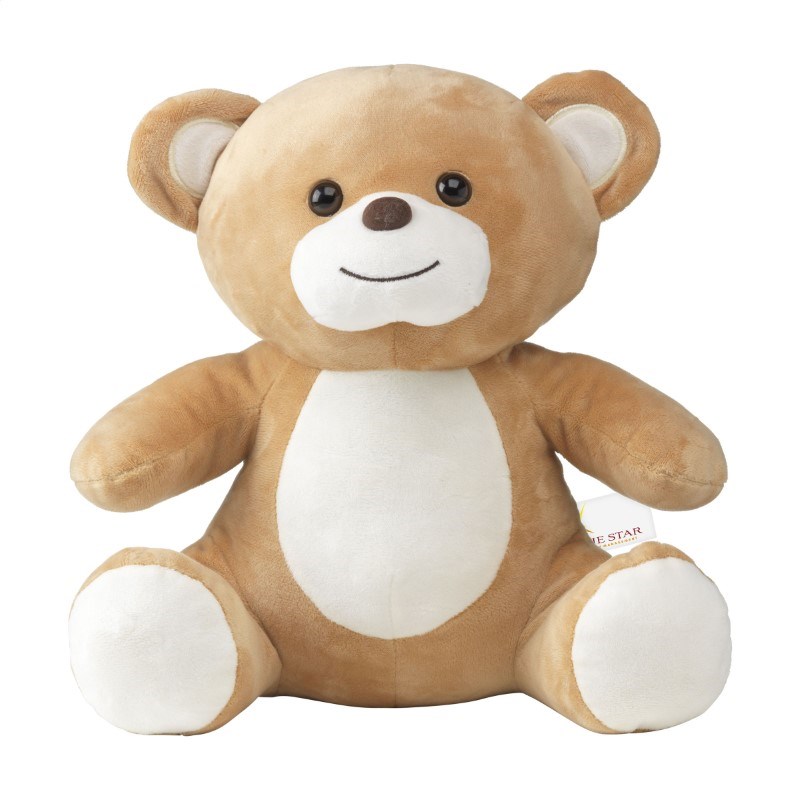 Lichtbruine, superzachte knuffelbeer in extra groot formaat. Met kraalogen en verharde neus.