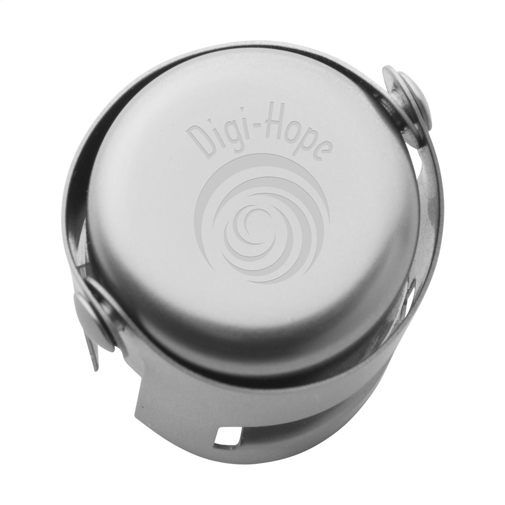 Stijlvolle RVS flessenstopper voor het luchtdicht afsluiten van champagneflessen en wijnflessen met kurk.
