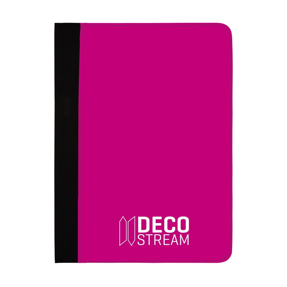 Schrijfmap in A4-formaat. Van stevig, gewatteerd microfiber. Met 4 insteekvakken, elastische penhouder, gelinieerde schrijfblok en balpen. Deze schrijfmappen leveren wij precies zoals u wilt: in iedere gewenste kleur, met een uniek ontworpen print of eigen design. Zelfs haarscherpe foto’s of een combinatie van alle bovenstaande opties behoren tot de mogelijkheden.