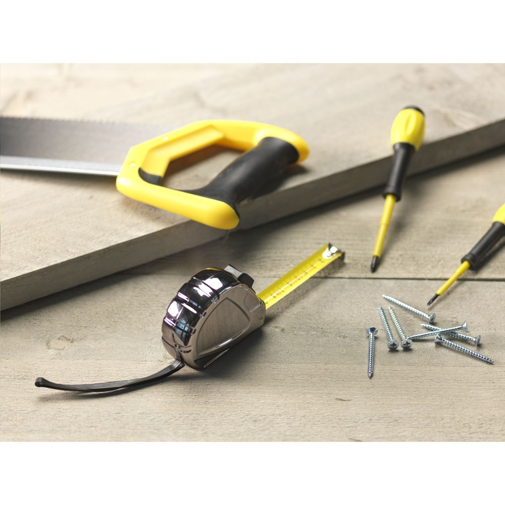 Professionele rolmaat van hoge kwaliteit met hardstalen band (bandbreedte 1,9 cm), aanduiding in centimeters, stevig kunststof huis, ingebouwde, automatische stop, broekriemclip en polsriem. Bestand tegen weer en wind door UV coating. Geijkt volgens Europese normen. Per stuk in doos.