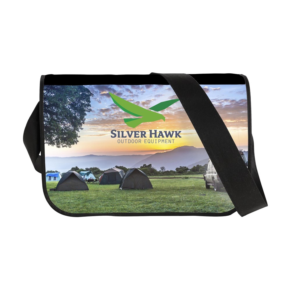 Praktische schoudertas van nonwoven materiaal (120 g/m²). Superlicht en sterk. Met ruim hoofdvak, insteekvakjes voor balpennen, schouderriem en overslag met klittenbandsluiting. Deze schoudertassen leveren wij precies zoals u wilt: in iedere gewenste kleur, met een uniek ontworpen print of eigen design. Zelfs haarscherpe foto’s of een combinatie van alle bovenstaande opties behoren tot de mogelijkheden.