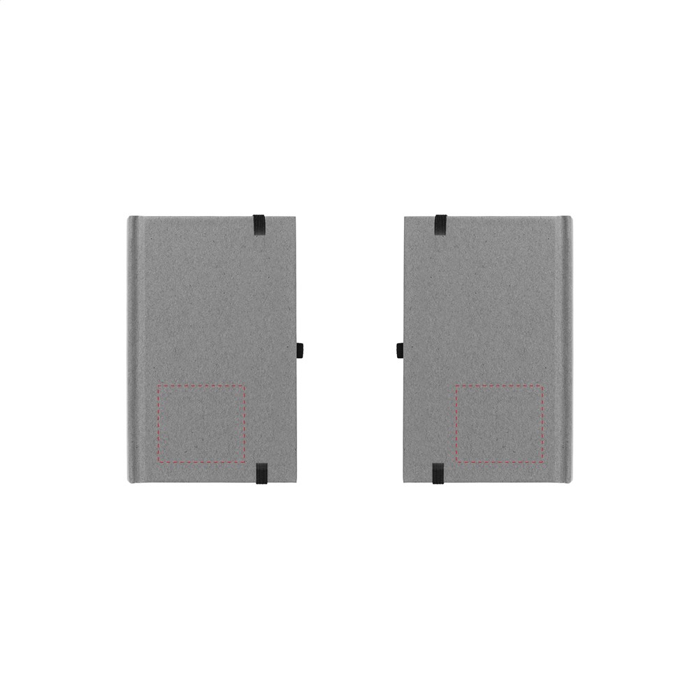 Milieuvriendelijk, A6 formaat notitieboekje van gerecycled materiaal. Met ca. 80 vel crèmekleurig, gelinieerd papier, handige penlus en elastische sluiting.
