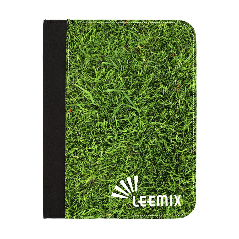 Schrijfmap in A5-formaat. Van stevig, gewatteerd microfiber. Met 2 insteekvakken, elastische penhouder, gelinieerde schrijfblok en balpen. Deze schrijfmappen leveren wij precies zoals u wilt: in iedere gewenste kleur, met een uniek ontworpen print of eigen design. Zelfs haarscherpe foto’s of een combinatie van alle bovenstaande opties behoren tot de mogelijkheden.