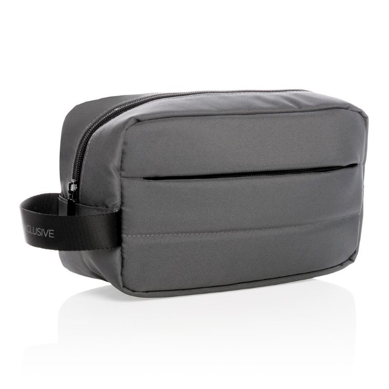 Bewaar uw toiletartikelen stijlvol opgeborgen en netjes georganiseerd terwijl u onderweg bent in de AWARE ™ RPET toilettas. Het beschikt over een ruim hoofdcompartiment, met voldoende ruimte voor je verzorgingsbenodigdheden. Een voorvak met ritssluiting biedt extra opbergruimte voor kleine benodigdheden. De buitenstof en binnenvoering zijn gemaakt van AWARE ™ polyester gemaakt van 100% gerecyclede PET-flessen. AWARE ™ gebruikt alleen echt gerecyclede materialen die traceerbaar zijn vanaf de bron, wat dit echt uniek maakt. Door gerecyclede materialen te gebruiken, kunnen we enorme hoeveelheden water besparen, wat een positieve impact heeft op het milieu. Binnen en buitenmateriaal 100% AWARE ™ gerecycled polyester. PVC vrij.
