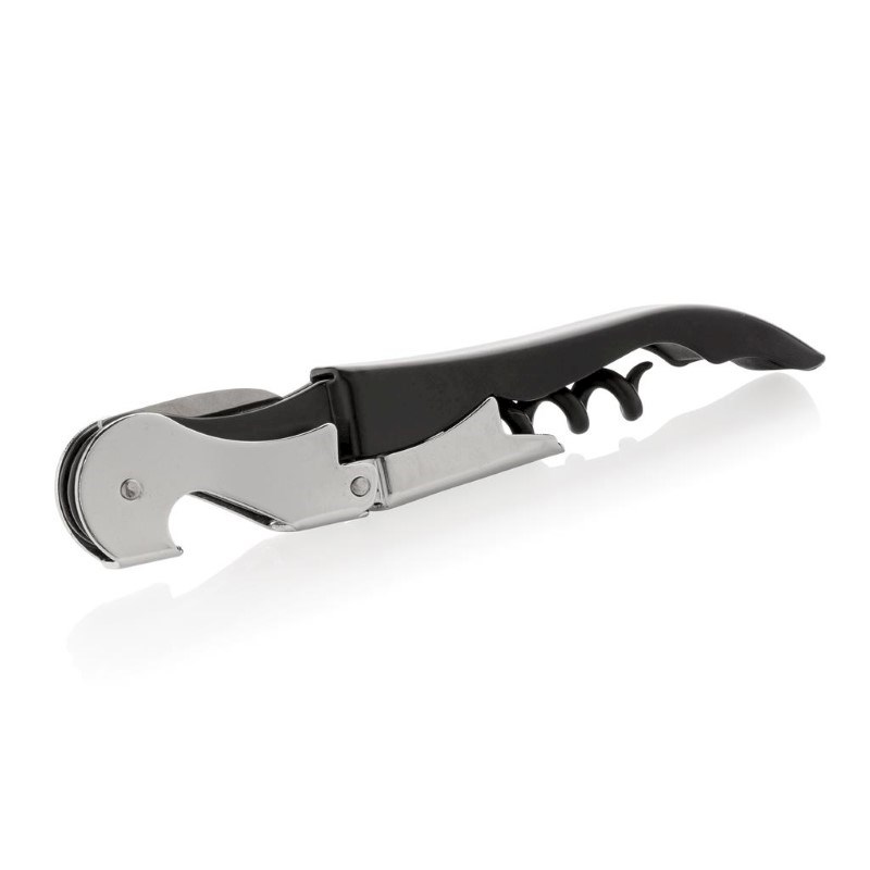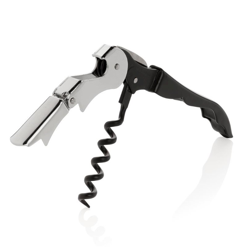 Deze kurkentrekker is een klassiek ontwerp met een foliesnijmes, een tweetraps kurkheffer en flesopener. Verpakt in geschenkverpakking.