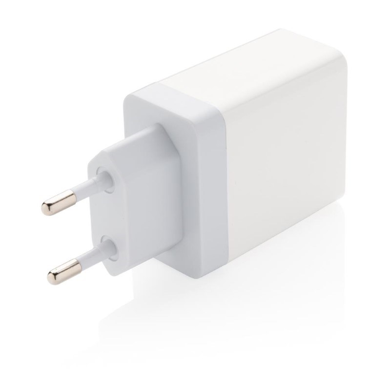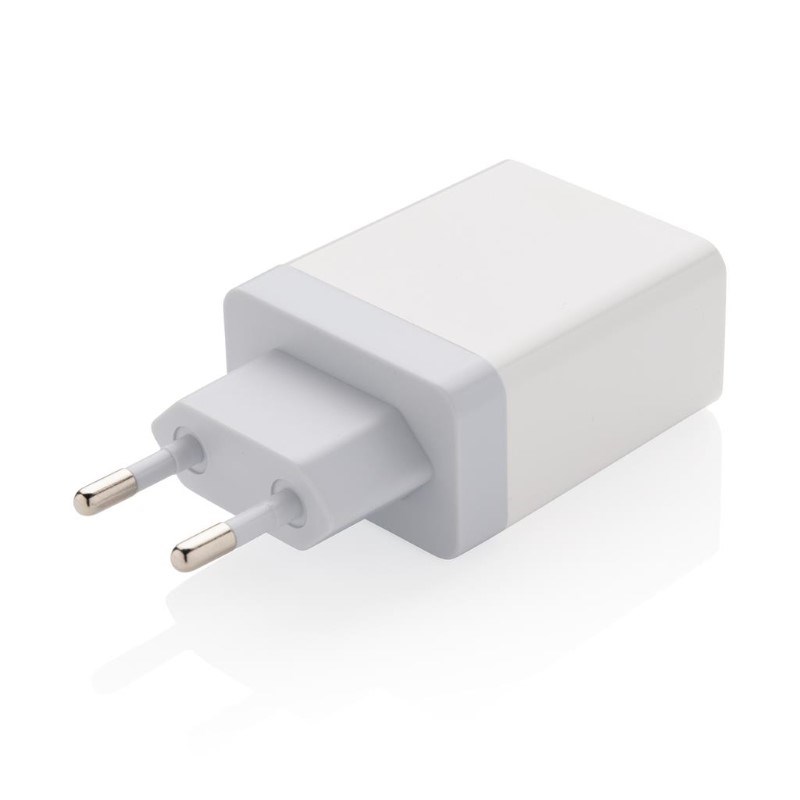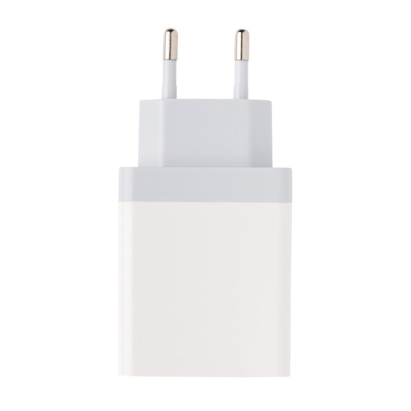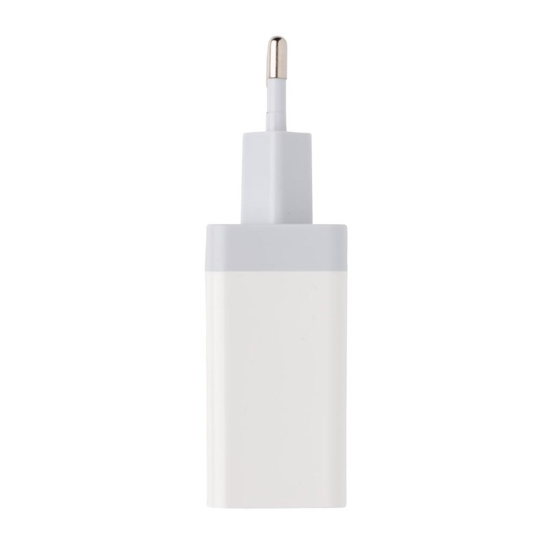 Supersnelle 30W ABS-materiaal muuradapter met power delivery. De oplader wordt geleverd met een USB 2A-uitgangspoort en één type C-uitgang die snel opladen met power delivery technology ondersteund. Hiermee kunt u uw mobiele apparaat binnen een uur opladen als het PD-opladen ondersteunt. Input 100-240V in; Type-C-Output(PD): 5V / 3A, 9V / 2A, 12V / 1.5A; USB-output 5V / 2.4A (max) Totaal vermogen: 30W.