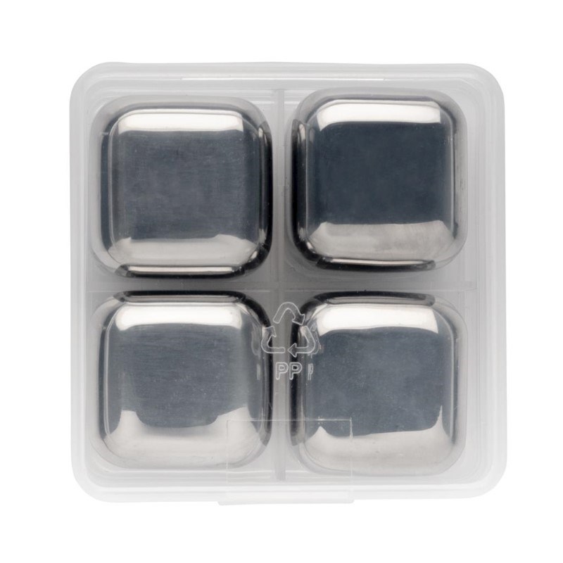 Geniet van je gekoelde drank met deze set van 4 roestvrijstalen ijsblokjes. De blokjes helpen de smaak van uw favoriete drankje te behouden zonder verdunning. De set wordt geleverd in een handige opbergdoos, ze zijn eenvoudig te gebruiken: bewaar ze gewoon in je vriezer en ze zijn klaar voor gebruik in slechts 3 uur!