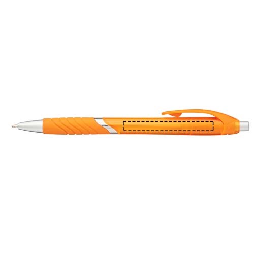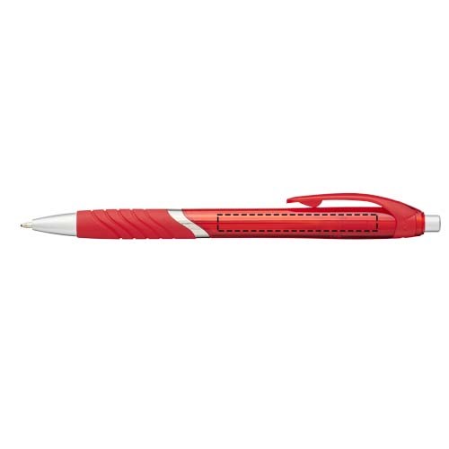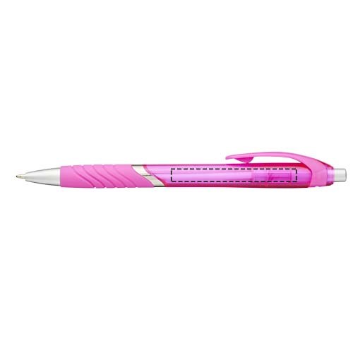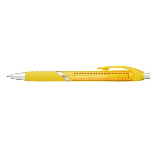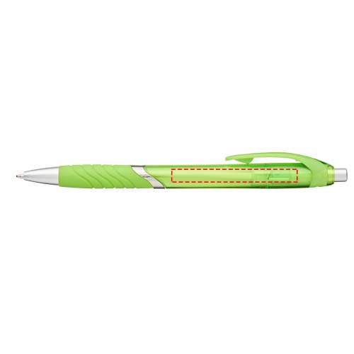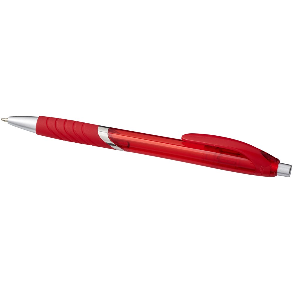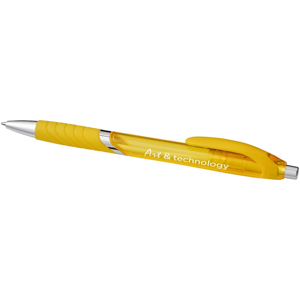 Populaire balpen met klikmechanisme en felgekleurde doorschijnende huls met bijpassende kleurenclip en rubberen grip. Verkrijgbaar in diverse aantrekkelijke kleuren.