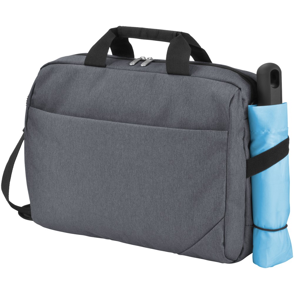 Exclusief design laptop tas met voorvak met ritssluiting inclusief organizer, hoofdvak met rits met 14" laptopvak en tabletvak. Afneembare en verstelbare schouderriem. Handgrepen. Trolleykoker aan de achterkant. De elastische koker en lus aan de zijkant van de onderkant kunnen worden gebruikt voor uw paraplu of waterfles.