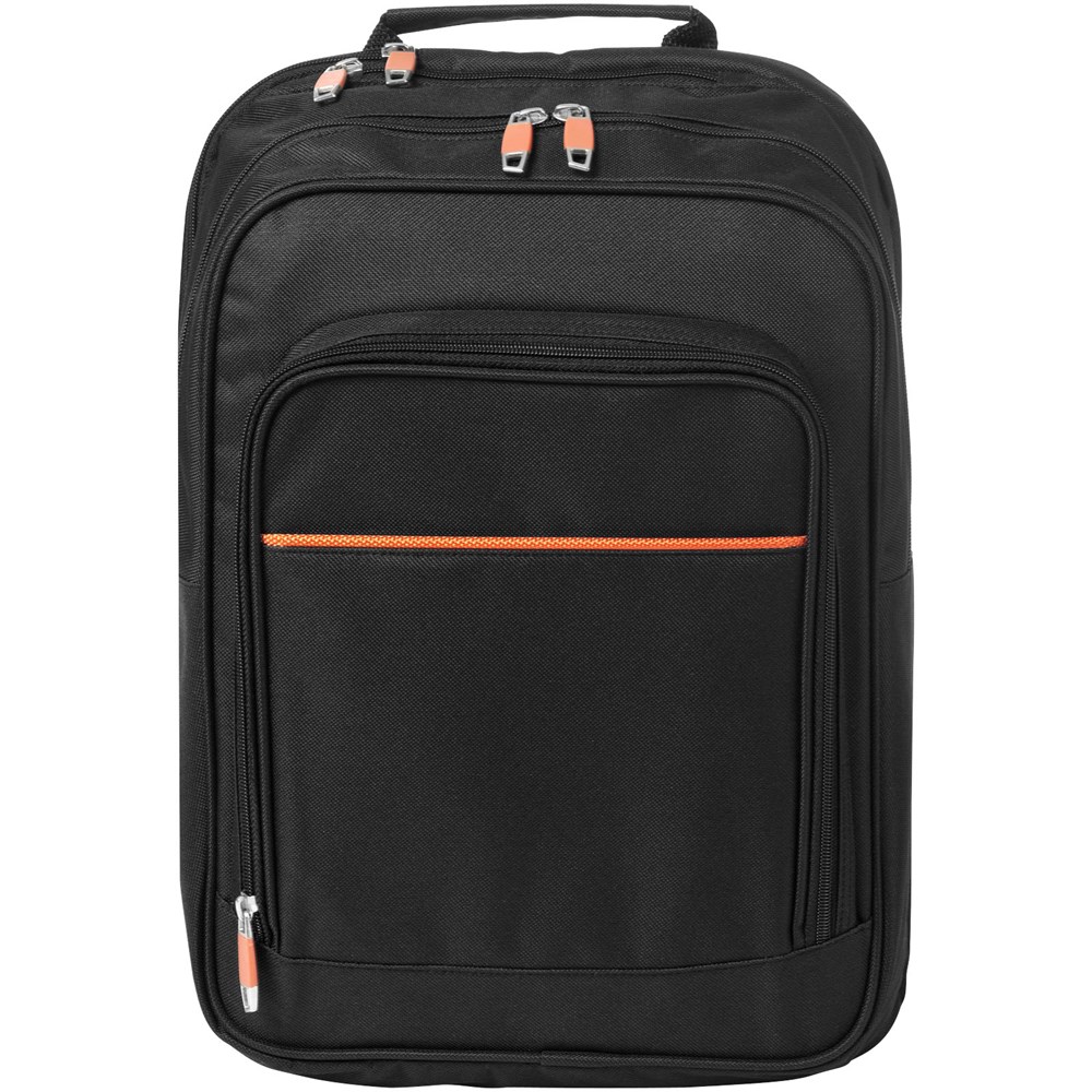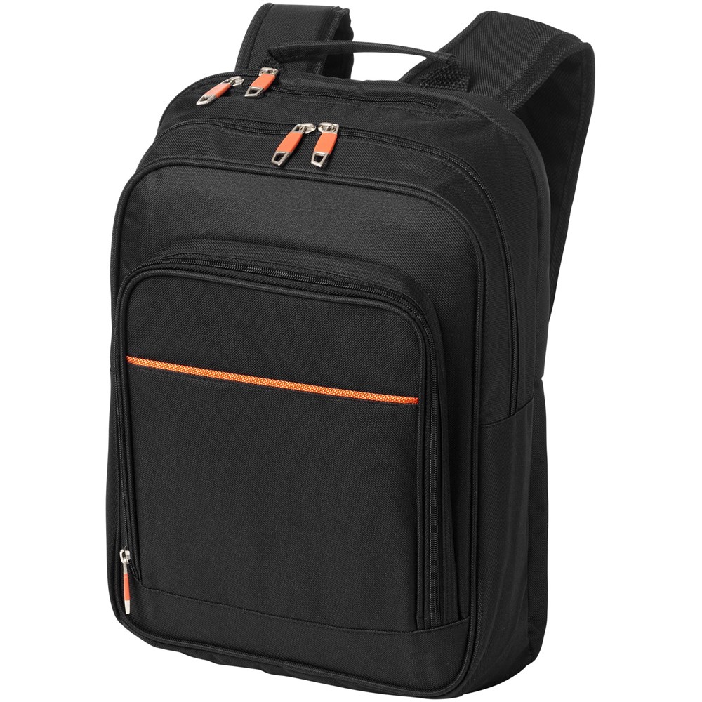 Rugzak met speciaal laptopvak aan de achterzijde, groot hoofdvak, snel toegankelijk vak aan de bovenkant, voorvak met ritssluiting en organizer en verstelbare, gevoerde schouderbanden.