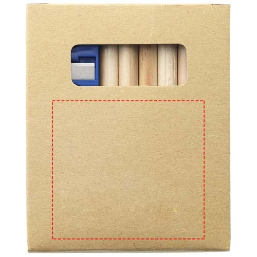 Set van 6 kleurpotloden, puntenslijper en kleurboek. Decoratie is niet mogelijk op de losse onderdelen.