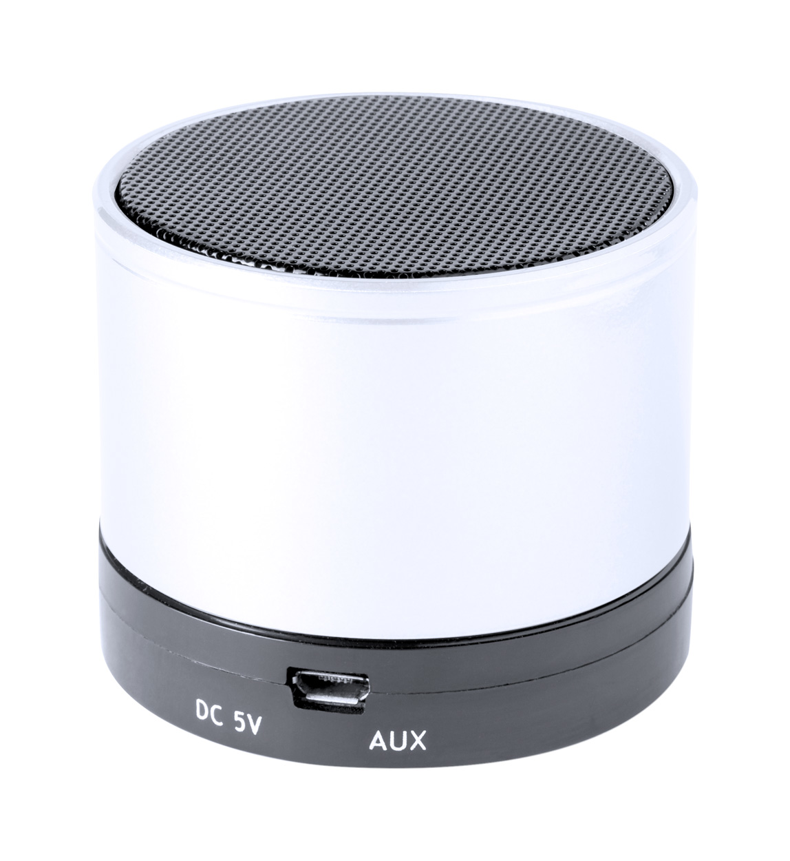 Bluetooth speaker met metalen behuizing. Met radio, mp3 speler, handsfree bel functie in gebouwde oplaadbare accu. Incl. USB lader en aux-in kabel.