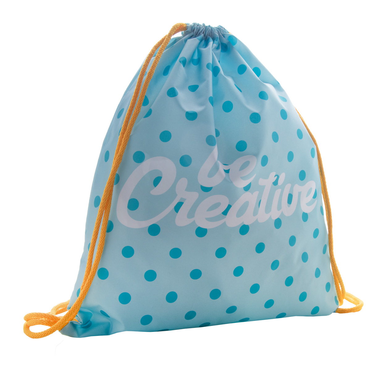 Custom made trektouw tas met gekleurd touw, 190T polyester. Met all-over sublimatieprint. MOQ: 50 stuks.