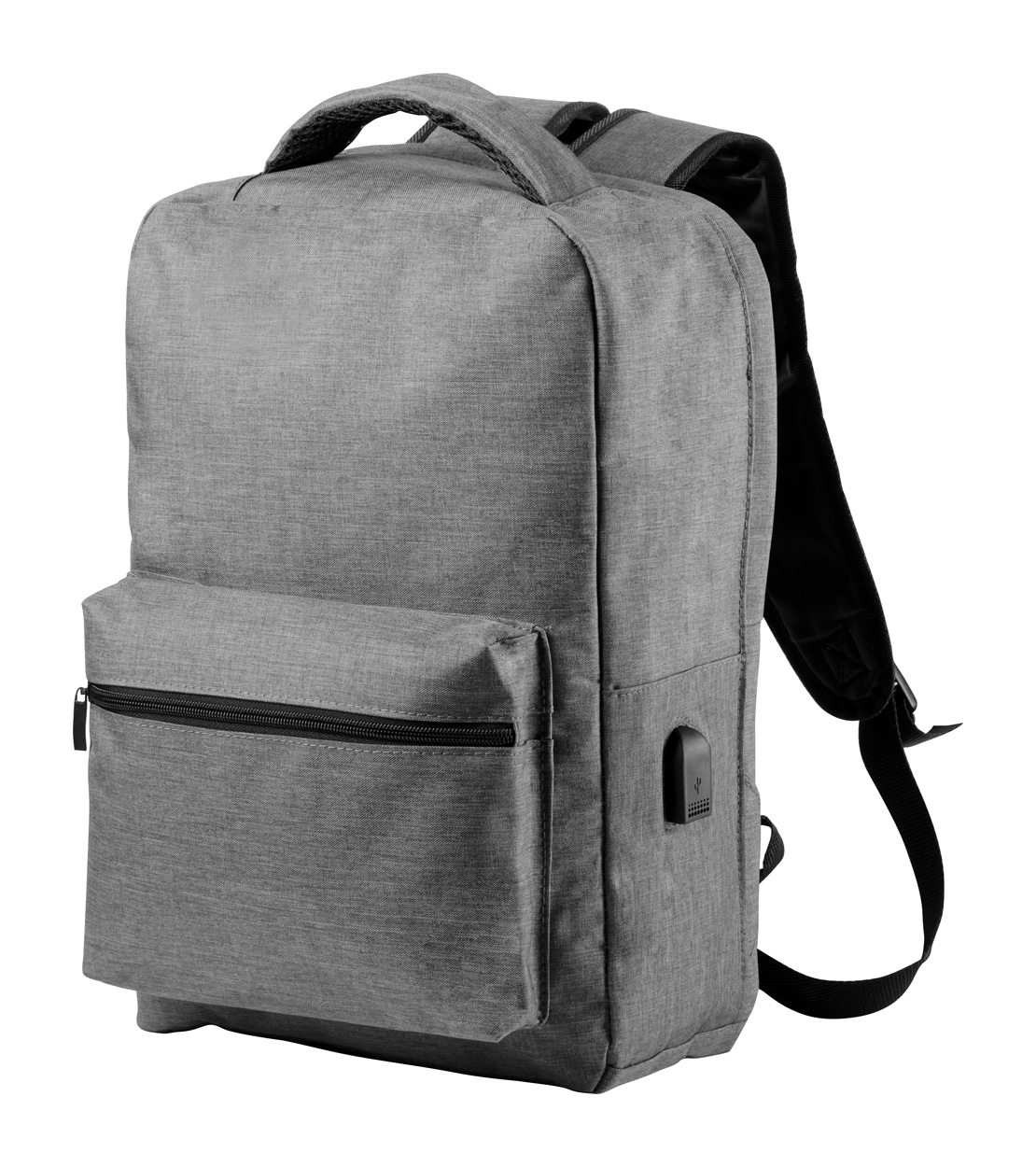 RFID beschermende anti-diefstal rugzak met meerdere geritste compartimenten. Gevoerd laptop (15") en tablet (10") compartiment, gevoerde rug en gevoerde schouderbanden. Met ingebouwde usb connector voor een powerbank. 300D Polyester.
