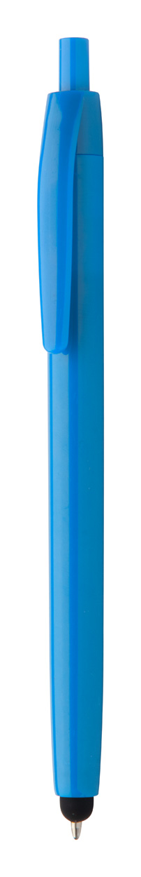 Plastic balpen met touch stylus. Blauwschrijvend.