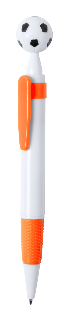Plastic balpen met voetbaldecoratie. Met blauwe vulling.