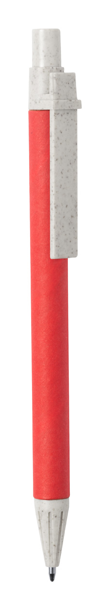 Balpen van gerecycled papier met ecologische plastic onderdelen met tarwestro. Met blauwe vulling.