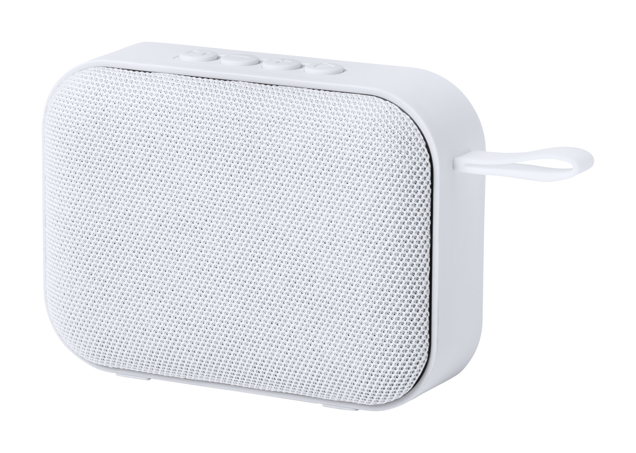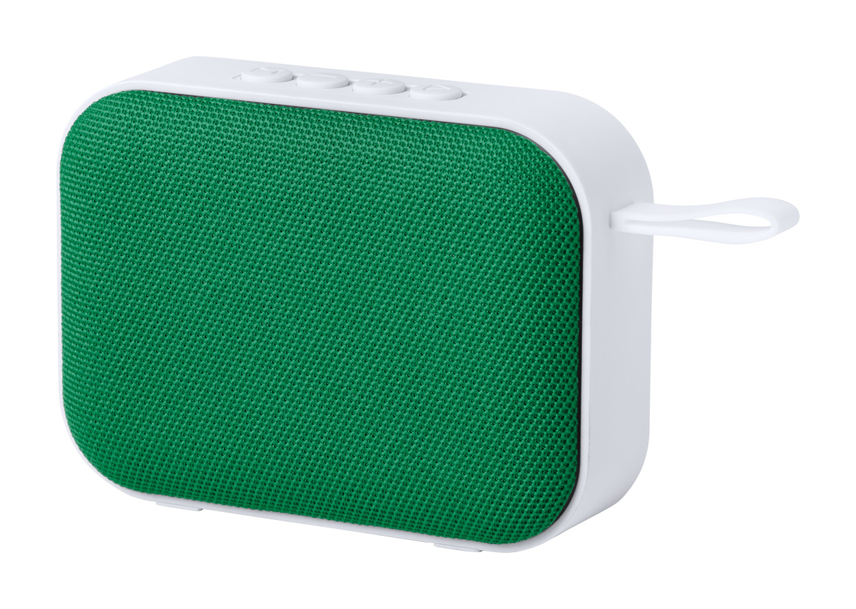 Bluetooth-luidspreker met handsfree bellen, FM-radio, USB en micro SD-spelerfuncties. Met plastic behuizing, polyester luidsprekerdoek en oplaadbare batterij. Inclusief USB-laadkabel.