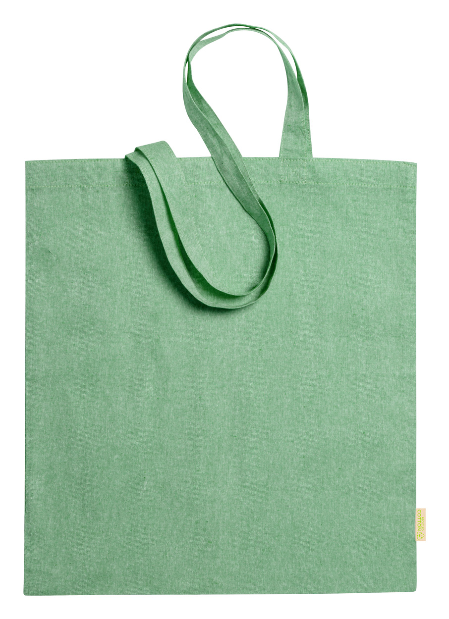Herbruikbare, gerecyclede katoenen boodschappentas met lange hengsels. 100% gerecycled katoen, 120 g / m².