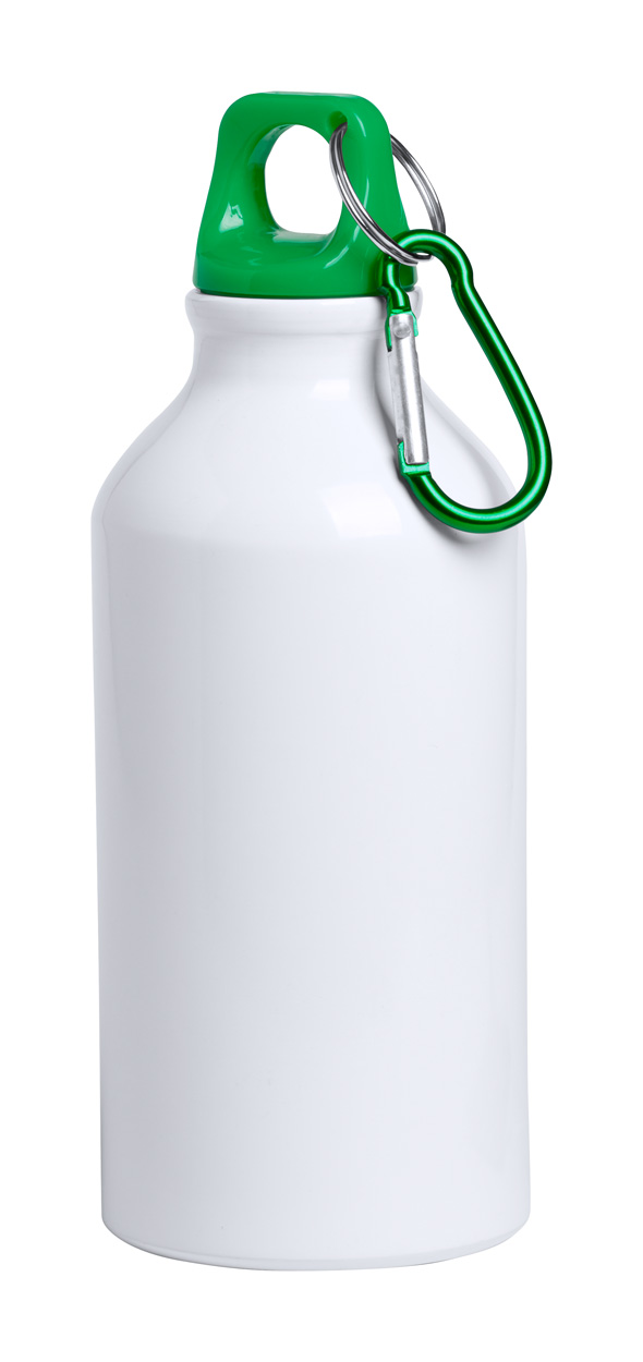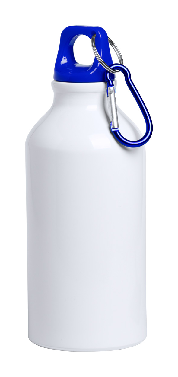 Aluminium sportfles in wit met bijpassende dop en karabijnhaak, 400 ml.
