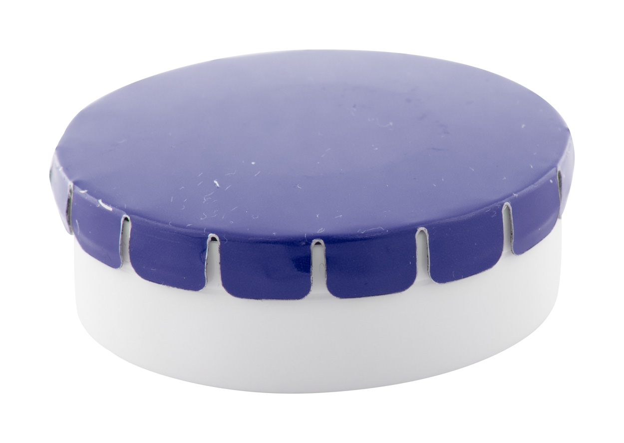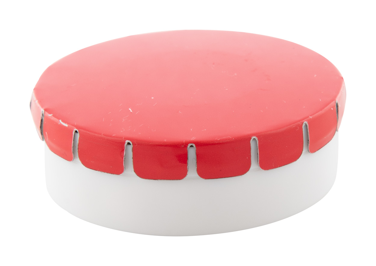 Mint snoepjes in ronde plastic container met gekleurde, gemakkelijk te openen blikken deksel. Bevat 12 gram suikervrij muntsuikergoed.