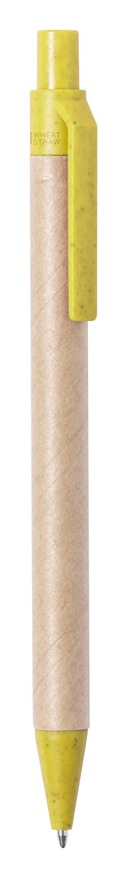 Balpen van gerecycled papier met ecologische plastic onderdelen van tarwestro. Blauw schrijvend.