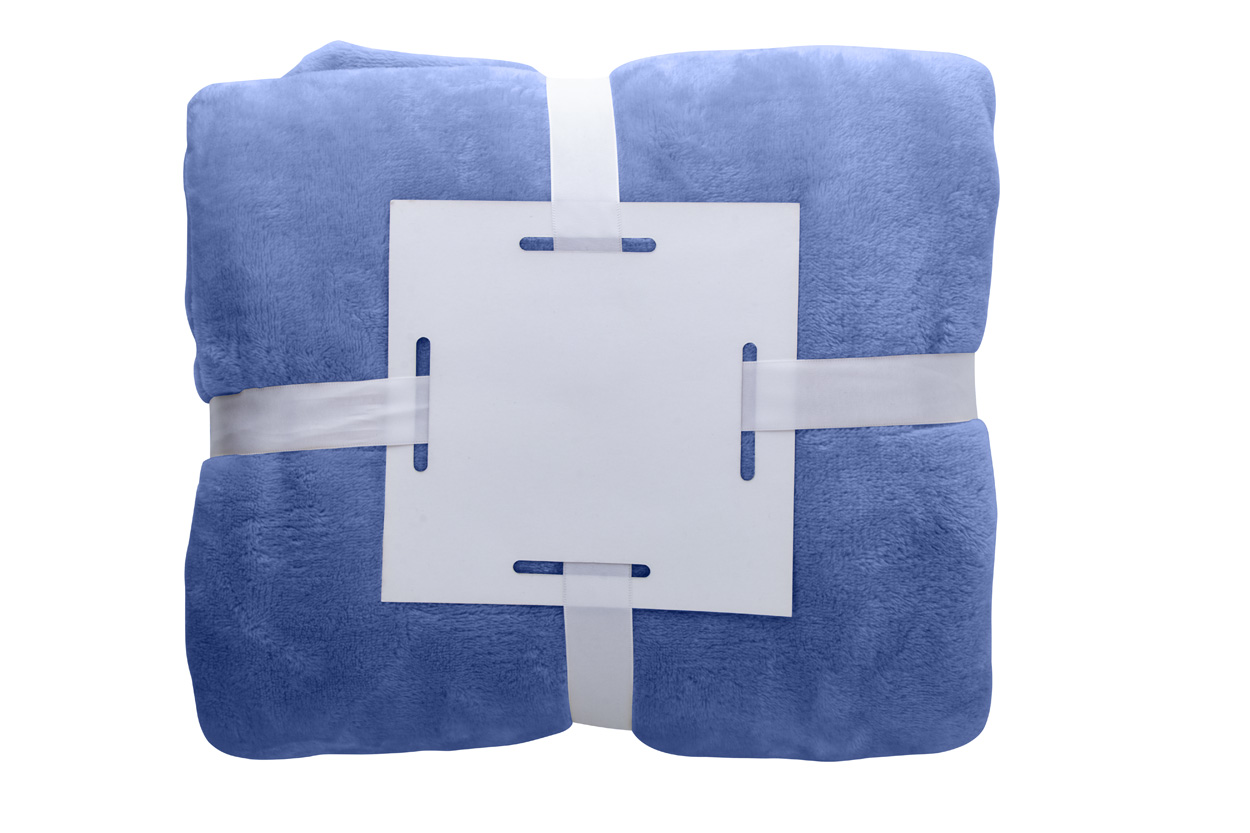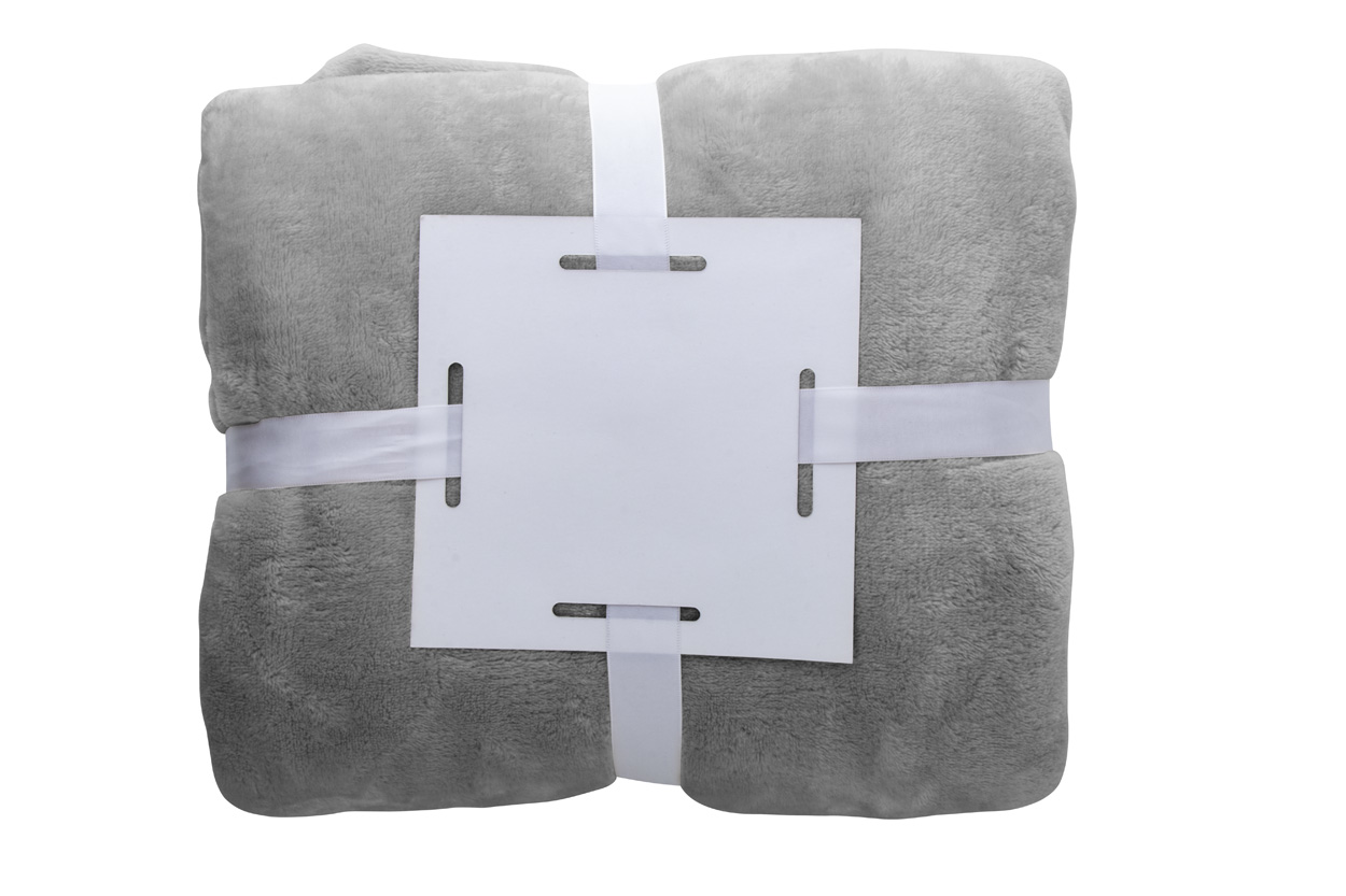 Flanellen fleece deken, 280 gr / m². Verpakt met wit lint en bedrukbare papieren kaart.