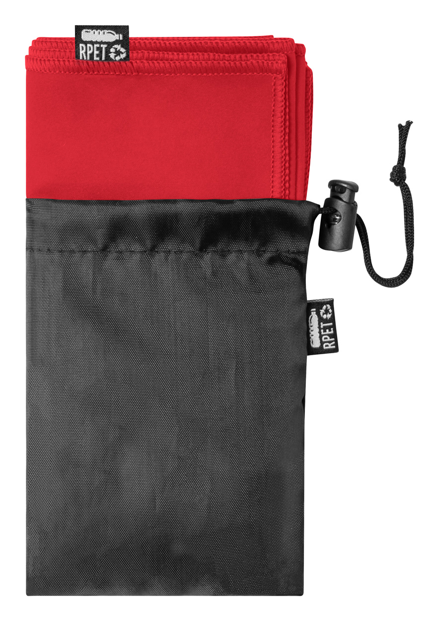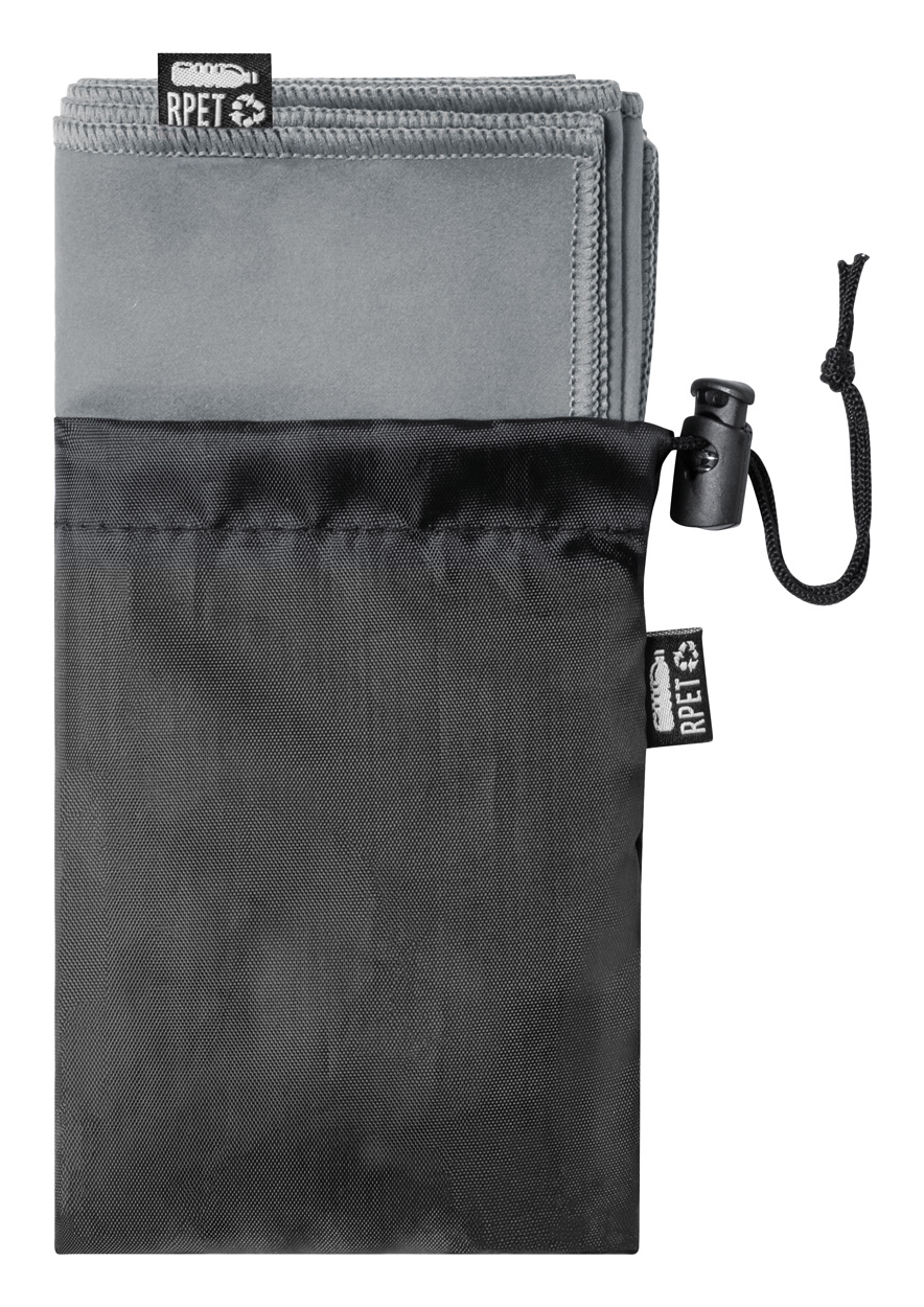 Sporthanddoek van microvezel in draagtas met trekkoord, RPET polyester 200 g / m².