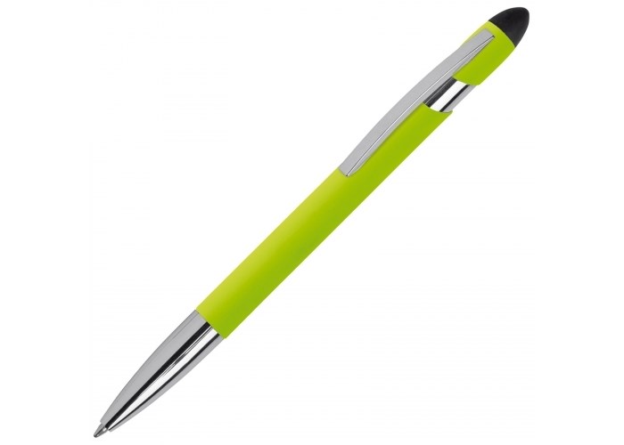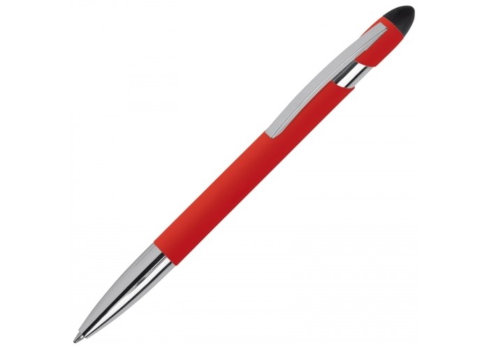 Toppoint design aluminium balpen met stylus functie en een rubberised afwerking. Met stevige metalen clip en leverbaar in hippe kleuren. Blauwschrijvende vulling.