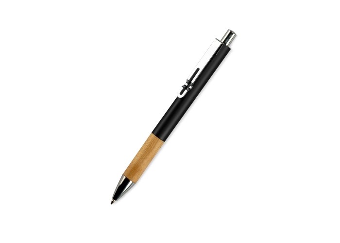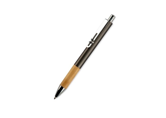 De balpen heeft een uitermate uniek design dankzij de houten grip. Tevens heeft deze pen een metalen clip en is de pen gemaakt van aluminium. Blauwschrijvend.