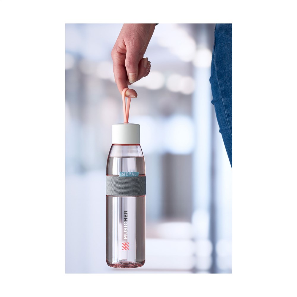 Hippe, navulbare, kunststof waterfles van het merk Mepal. De schroefdop is voorzien van een lusje, waarmee de waterfles gemakkelijk kan worden meegenomen. Voorzien van een ruime opening en anti-slip-grip. Deze hoogwaardige drinkfles is BPA-vrij, Food-Approved en 100% lekvrij. Ook geschikt voor koolzuurhoudende dranken, vul in dat geval de fles niet helemaal tot de rand. Met 2 jaar Mepal fabrieksgarantie. Made in Holland. Inhoud 500 ml. VOORRAAD INFORMATIE: Tot 1.000 stuks beschikbaar binnen 10 werkdagen. Uitzonderingen voorbehouden.