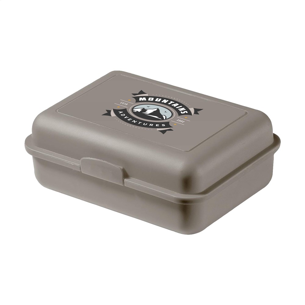 Praktische, royale lunchbox van stevig bio-plastic. Met handige kliksluiting. BPA-vrij, food approved, smaakneutraal en 100% recyclebaar. Made in Germany. Het oppervlak is ideaal voor een full colour iMould opdruk (water-, kras-, kleur- en UV-bestendig) in elk gewenst design.