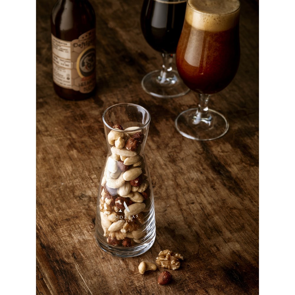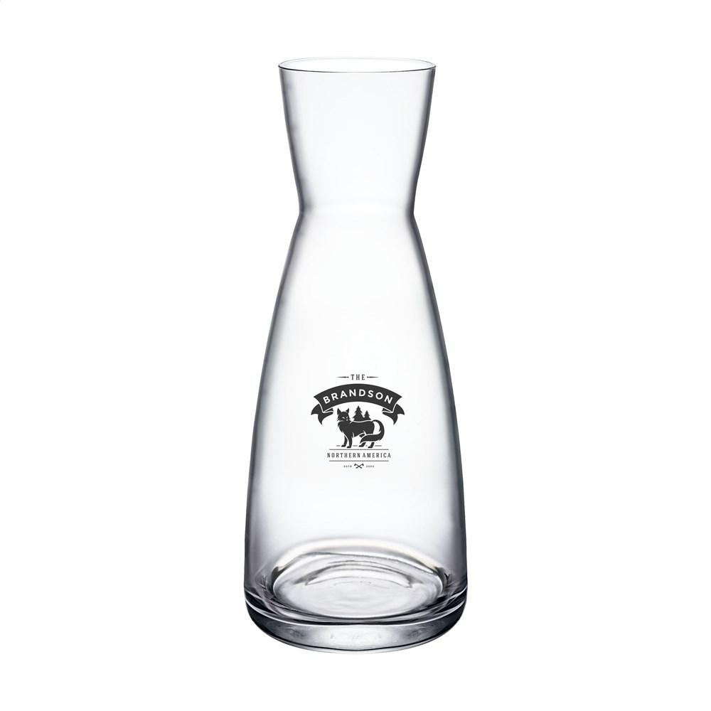Sierlijke, glazen karaf. Een kleine tafelfles voor het serveren van water, sap of alcoholische dranken. Ook populair voor het serveren van nootjes. Hygiënisch en handig. Inhoud 250 ml.