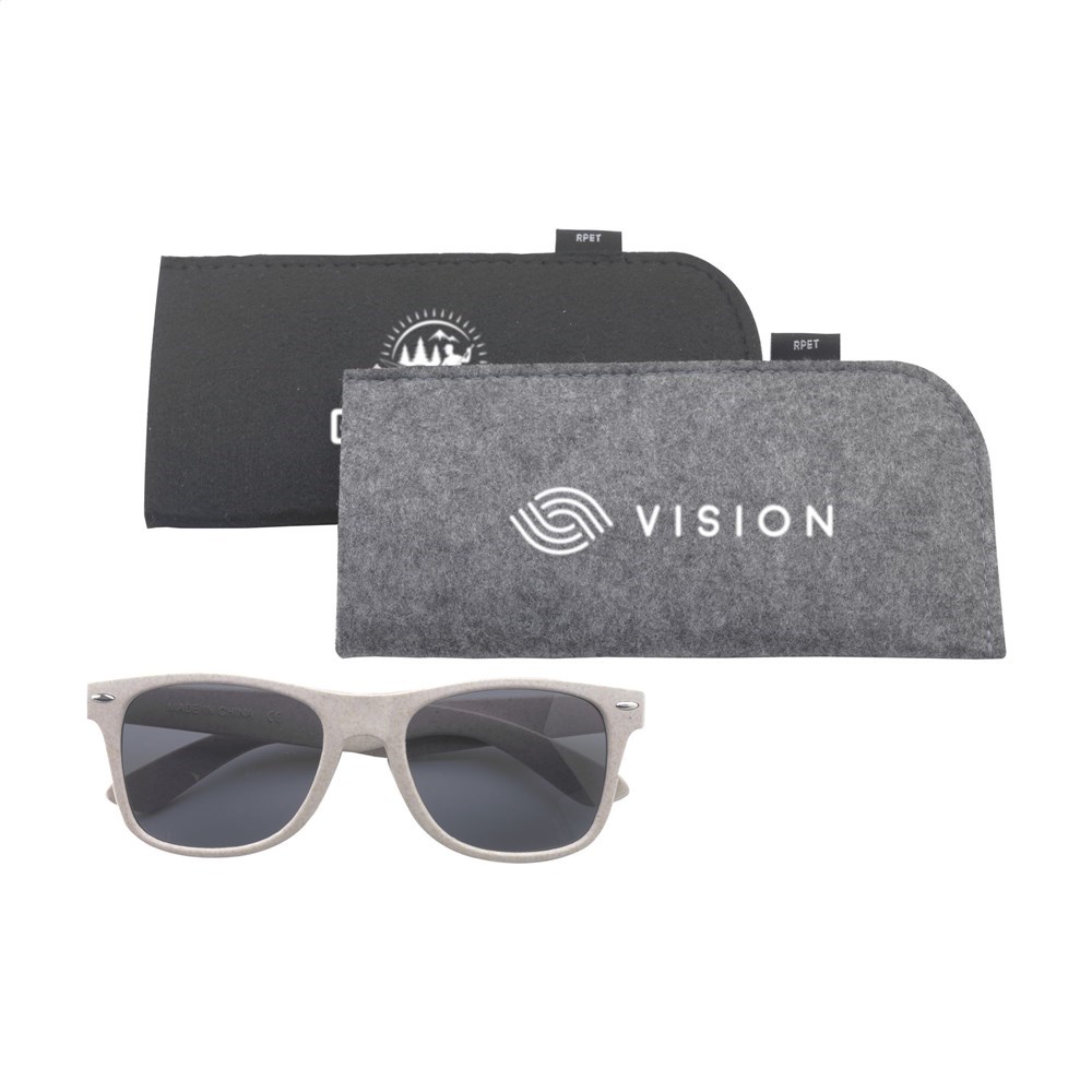 Beschermhoes van RPET kwaliteitsvilt (gemaakt van gerecyclede PET-flessen). Geschikt voor het veilig opbergen van een (zonne)bril. Een milieuvriendelijk product.