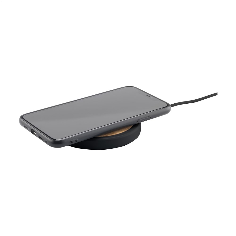 Supersnelle 10W oplader voor het draadloos opladen van mobiele telefoons. De behuizing van deze duurzame, draadloze snellader bestaat uit een combinatie van leisteen cement en bamboe. Een verantwoord product met een natuurlijke uitstraling. Compatibel met alle mobiele apparaten die QI draadloos laden ondersteunen (nieuwste generaties Android en iPhone). Input: 9V/2A. Draadloze output: 5V/10W. Inclusief micro-USB (4C) oplaadkabel (100 cm) en gebruiksaanwijzing. Per stuk in kraft doos.