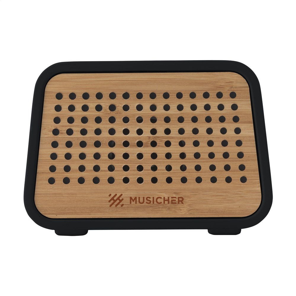 ECO Bluetooth 5W draadloze speaker met een natuurlijke uitstraling door het gebruik van natuurlijke materialen. De behuizing is gemaakt van zwart leisteen cement, waarbij de voorzijde volledig is vervaardigd van natuurlijk bamboe. De oplaadbare speaker (versie 5.0) heeft een draadloos bereik tot 10 meter en beschikt over een uitstekende geluidsweergave. Eenvoudig te bedienen en compatible met de meest gangbare smartphones en tablets. Met ingebouwde, oplaadbare batterij (450mAh) die, volledig opgeladen, garant staat voor een speeltijd van maximaal 3 uur. Output: 5W/4 Ohm/5V. Inclusief micro-USB oplaadkabel en gebruiksaanwijzing. Per stuk in kraft doos.