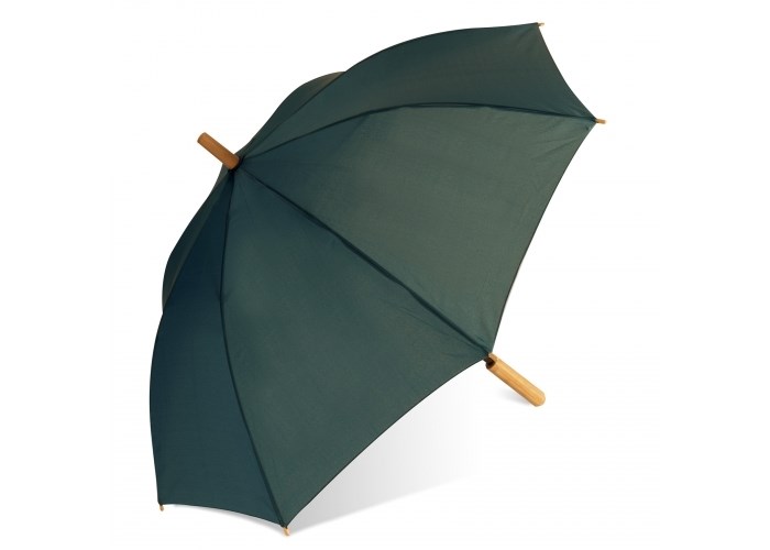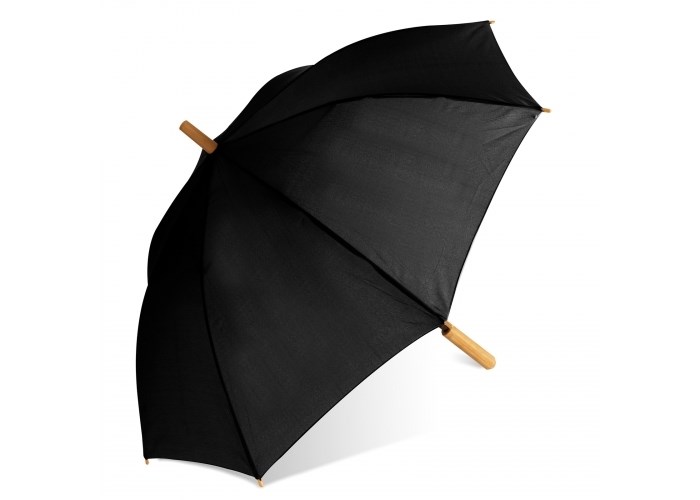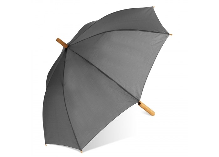 Stok paraplu gemaakt van R-PET met recht Toppoint design houten handvat. Dankzij het glasvezel frame is deze paraplu storm proof. De dopjes zijn gemaakt van bamboe en de stang van staal voor betere recycling. Het gemêleerde materiaal geeft deze paraplu een luxe uitstraling (zwart is uniform gekleurd).