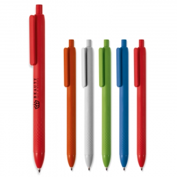 Balpen gemaakt van 100% PLA materiaal. Polymelkzuur (PLA) is biologisch afbreekbaar, biocompatibel en wordt geproduceerd uit plantaardige grondstoffen (maïszetmeel). De pen en clip zijn uit één stuk gemaakt voor extra stevigheid. Bevat een blauwschrijvende vulling.
