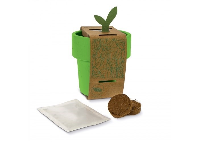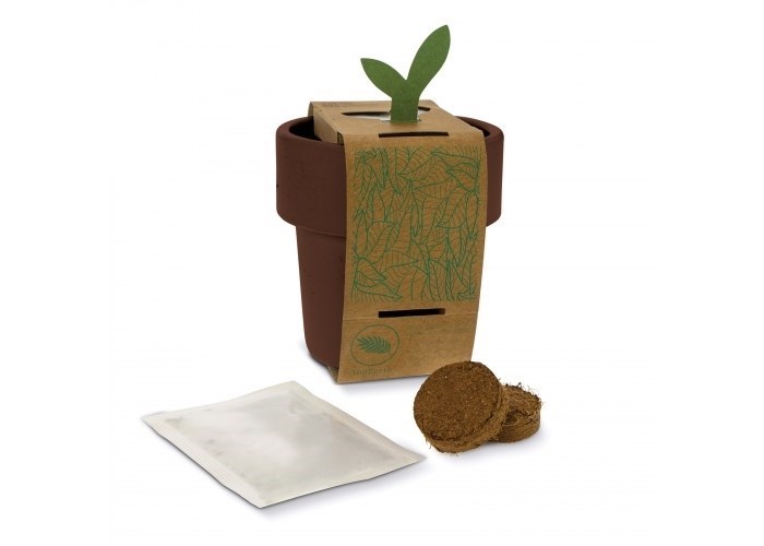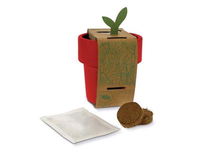 Een bloempotje met een pakje aardbeien zaadjes in meerdere vrolijk kleuren. Als het plantje groot genoeg is om deze over te zetten in de tuin, dan is de bloempot tevens ook in de vaatwasser schoon te maken en te gebruiken als koffiemok. De goed ontworpen rand zorgt voor een dubbele wand, om te voorkomen dat de hand verbrand bij het drinken.