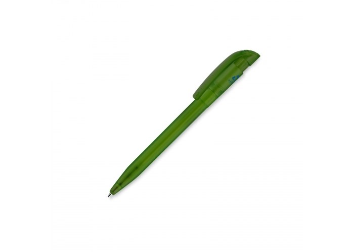 Moderne transparante balpen met boogclip, gemaakt van R-PET materiaal. R-PET betekend gerecycled PET kunststof. Door het grote drukoppervlak is het een uitstekend promotie artikel. Het bevat een drukmechaniek en een X20 vulling met blauw schrijvende inkt.