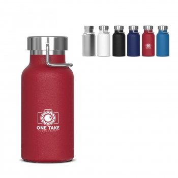 Dubbelwandig vacuüm geïsoleerde thermofles. De 100% lekvrije fles wordt geleverd in een mooie geschenkverpakking. Door het vacuüm tussen de wanden blijven dranken langer op temperatuur. Dranken blijven tenminste 12 uur warm of 24 uur koud. De fles bevat een poedercoating aan de buitenkant voor een hoogwaardiger oppervlak.