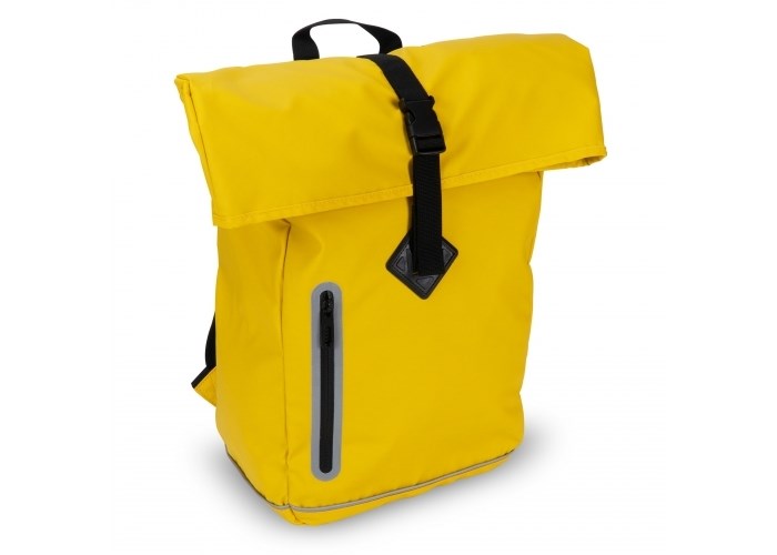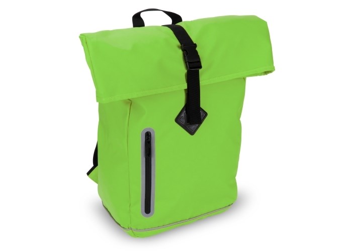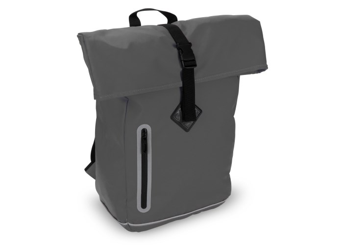 Stijlvolle rugzak met reflecteren details op zowel de voorzijde als de schouderbanden. De gladde coating op het materiaal, de oprolbare bovenkant als de naadloze rits maken deze tas waterafstotend (IPX1). Het rugpaneel en de schouderbanden zijn geschuimd voor extra draagcomfort.