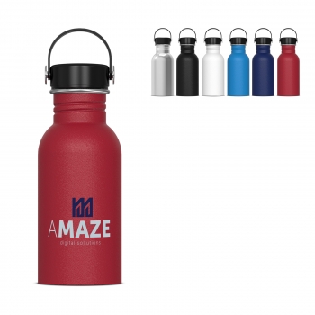 Roestvrijstalen enkelwandige waterfles. De 100% lekvrije fles wordt geleverd in mooie geschenkverpakking. De fles bevat een poedercoating aan de buitenkant voor een hoogwaardiger oppervlak. Geschikt voor koude niet-koolzuurhoudende dranken.