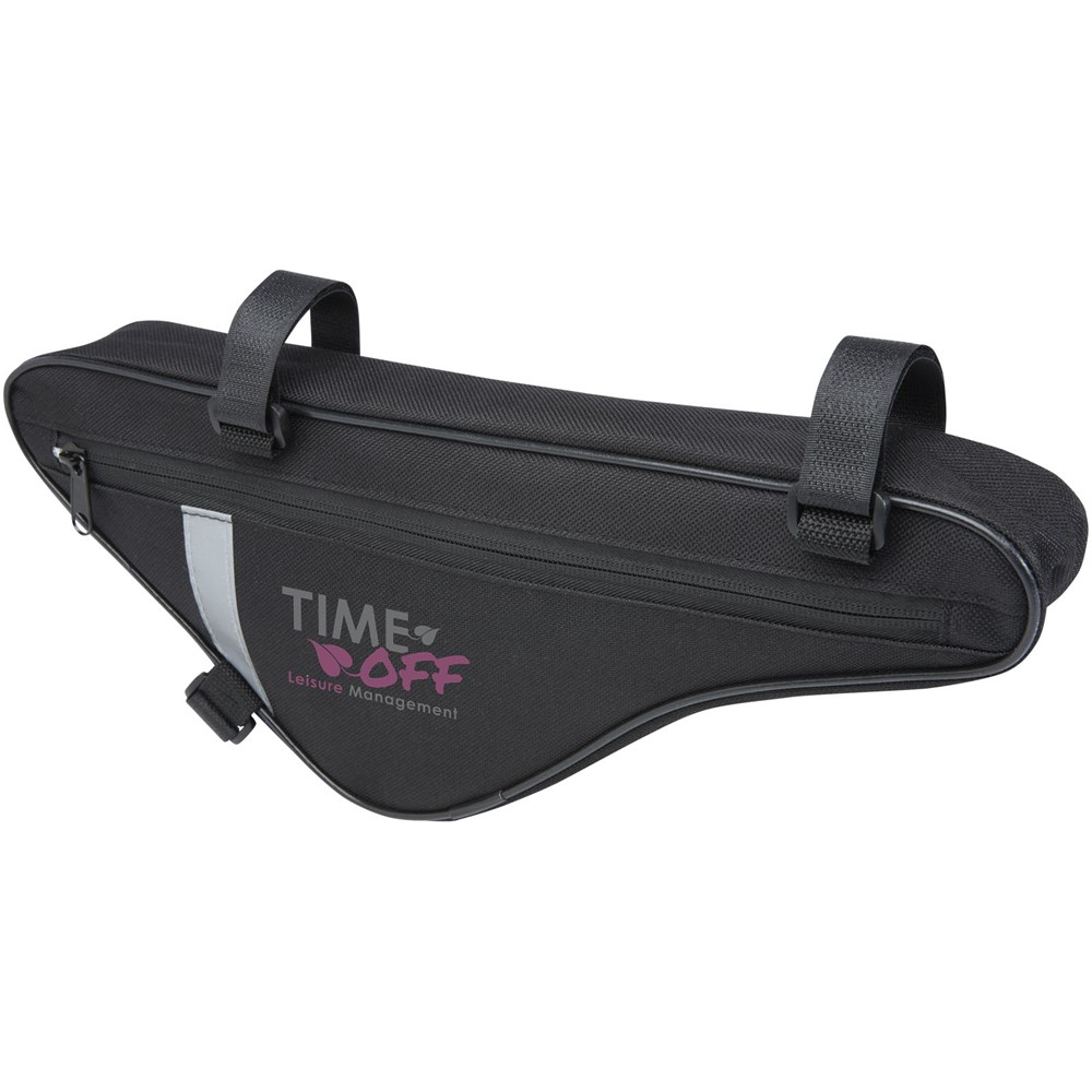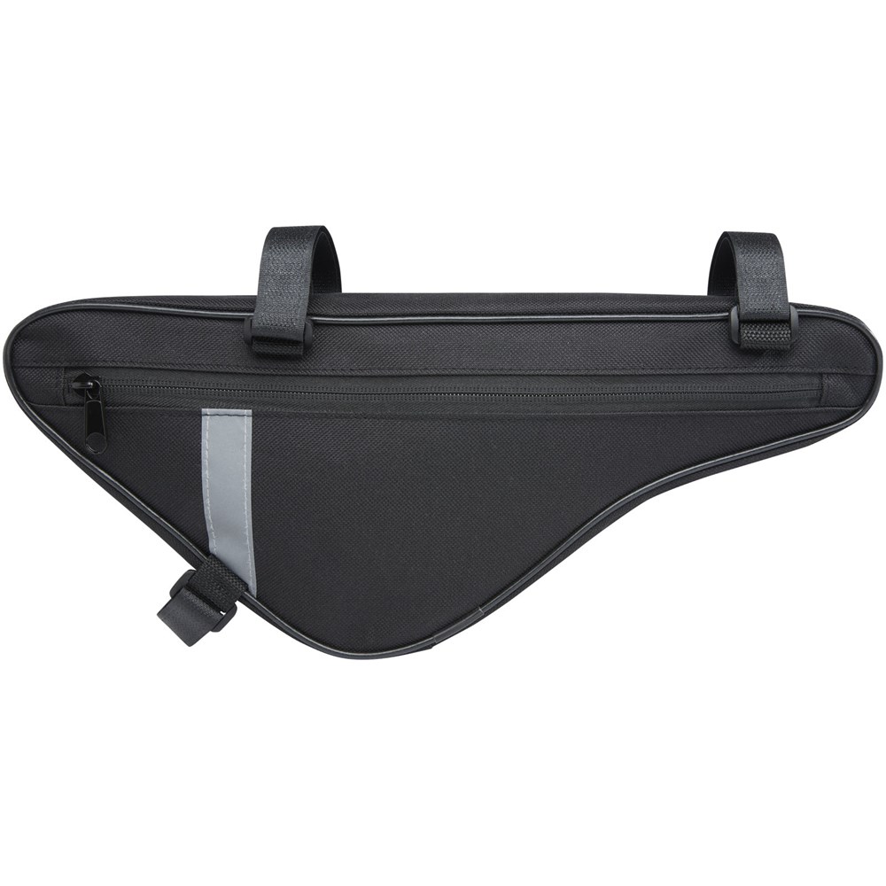 Grote driehoekige fietstas met rits. De tas heeft een afmeting van 35,5 x 13,5 x 4 cm en heeft reflecterende markeringen aan beide zijden voor maximale zichtbaarheid. De tas heeft 3 sterke en verstelbare bevestigingsstukken met klittenbandsluiting, om te bevestigen aan de fietsstang en stuur voor maximale veiligheid van uw persoonlijke bezittingen.