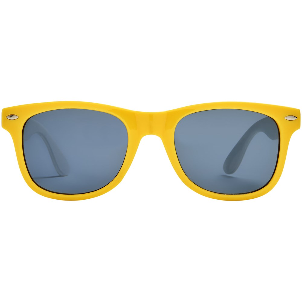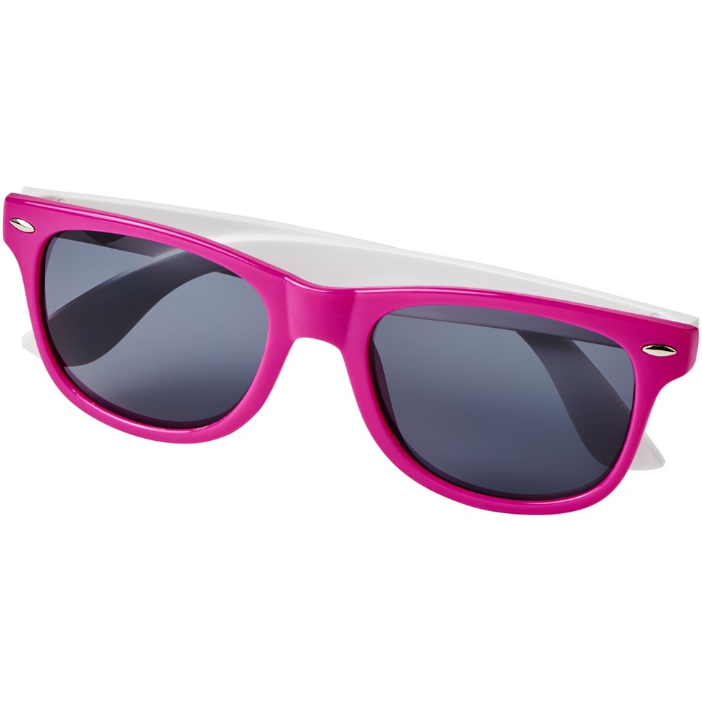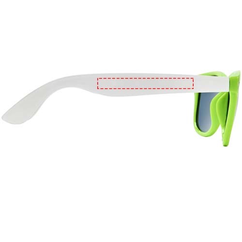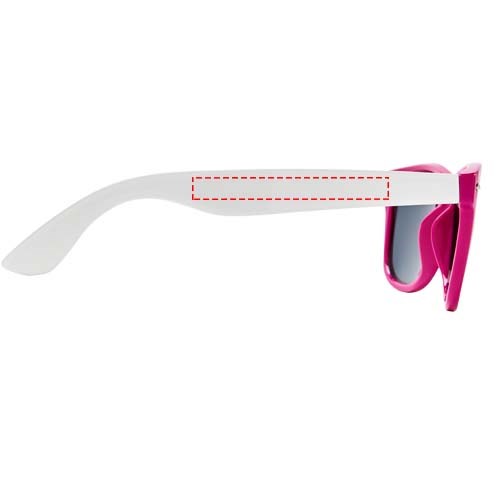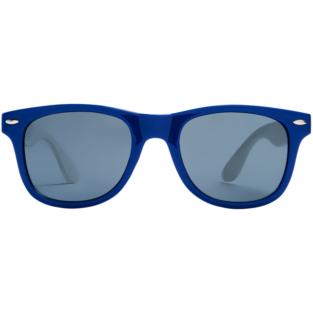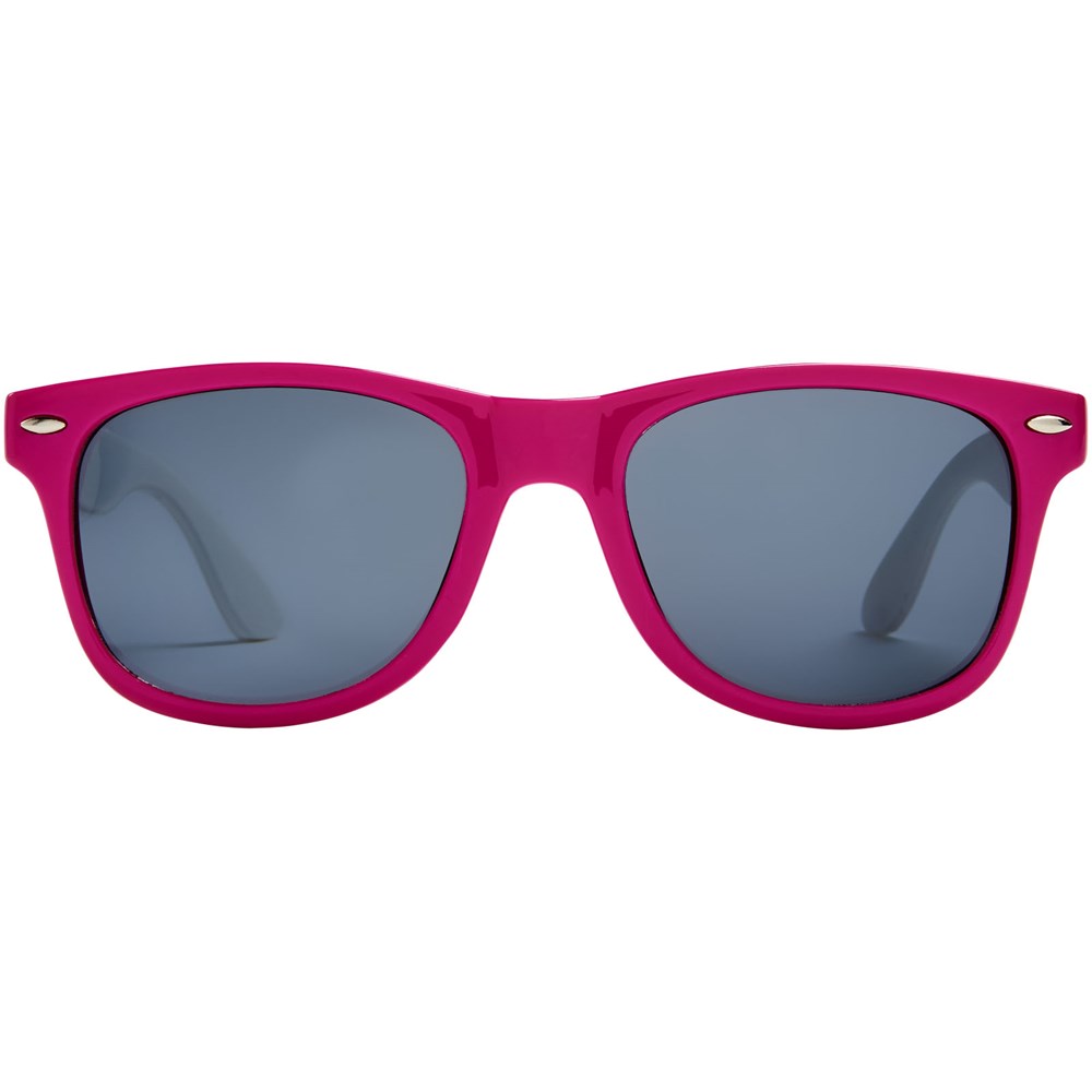Sun Ray retro design zonnebril met witte pootjes voor een breed scala aan decoratie-opties. Voldoet aan EN ISO 12312-1 en UV-400, glazen zijn van klasse 3.