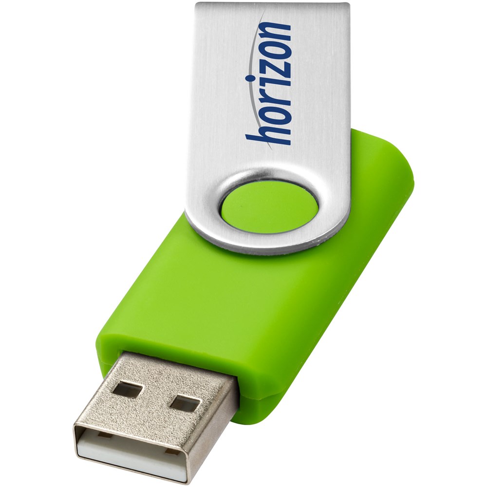 Met de Rotate-basic 2GB flash drive kan je gemakkelijk en veilig uw bestanden delen, verplaatsen en back-uppen. De plastic flashdrive heeft een 360 graden draaibare en lichtgewicht aluminium behuizing die het openen en sluiten vergemakkelijkt en de drive beschermt wanneer deze niet in gebruik is. Plug en play technologie - compatibel met Windows en MacOS besturingssystemen. USB 2.0 met een schrijfsnelheid van 2,92 MB/s en een leessnelheid van 9,76 MB/s. De USB stick is verkrijgbaar in verschillende kleuren en biedt diverse mogelijkheden voor het bedrukken van een logo.
