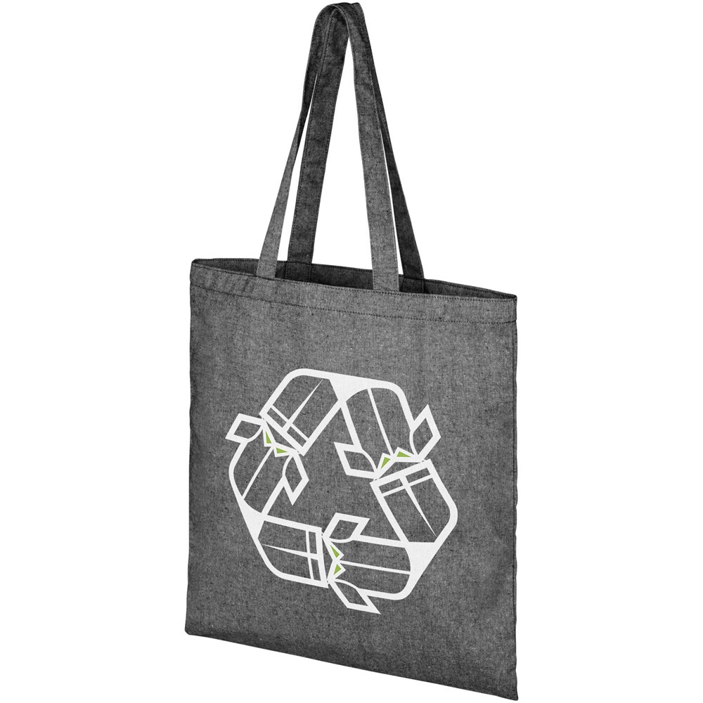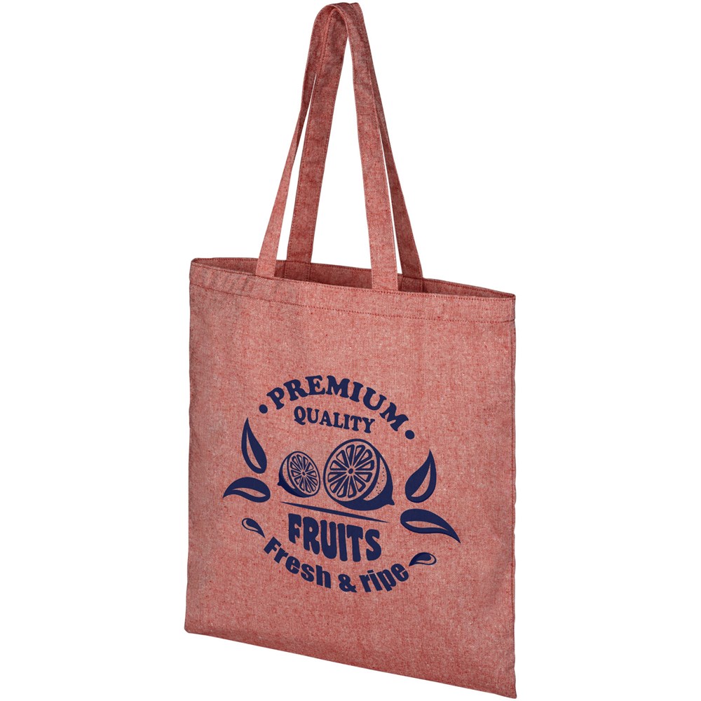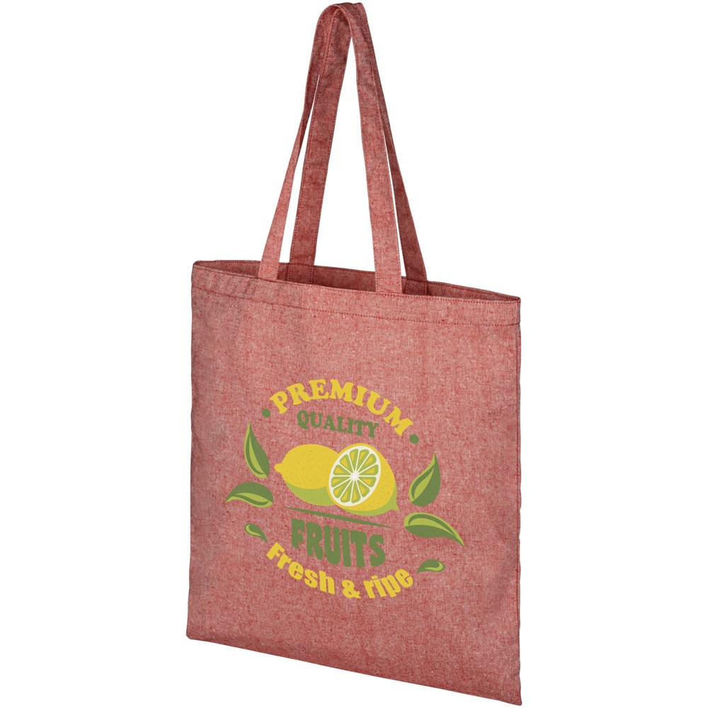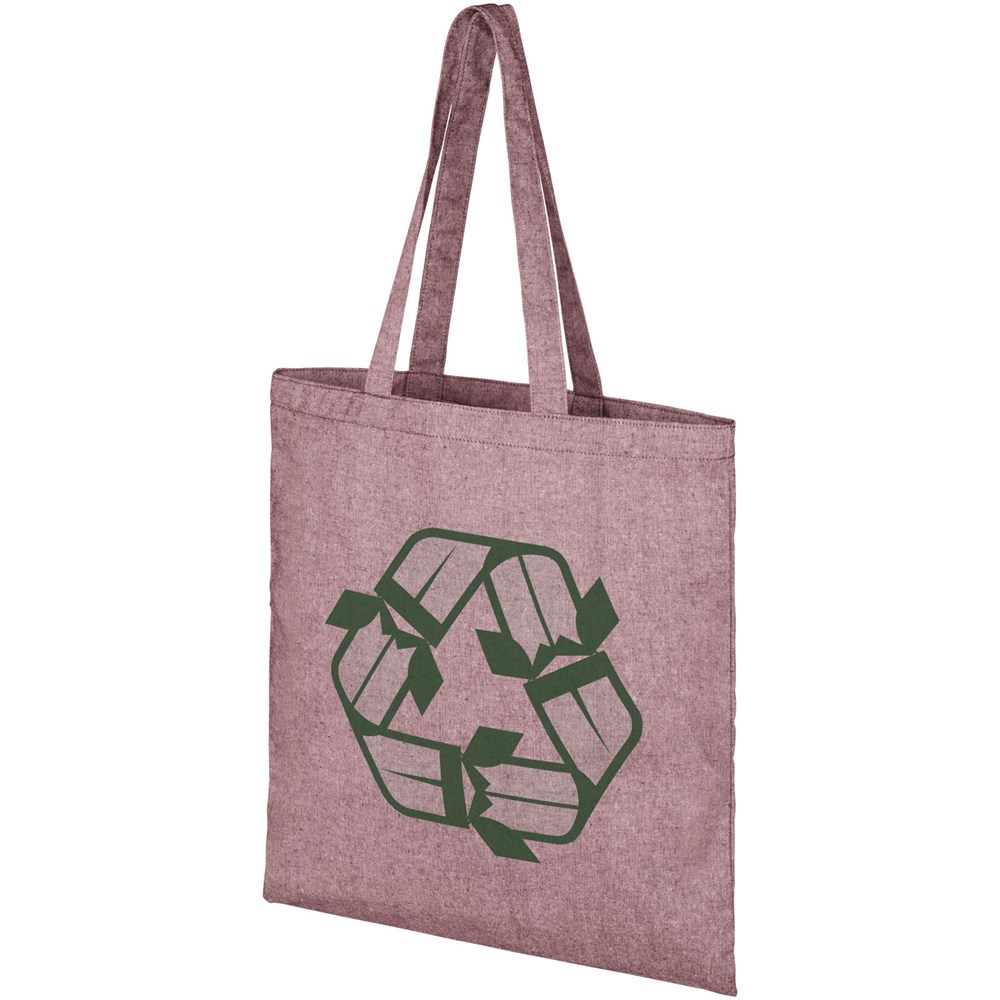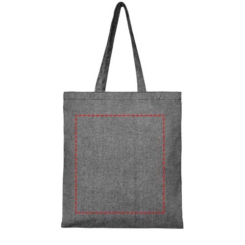 Draagtas gemaakt van 210 g/m² gerecycled katoen polyester mix. Gerecycled katoen wordt vervaardigd uit voor consumenten bestemd afval dat in textielfabrieken tijdens het snijproces wordt geproduceerd. Deze tas is gemakkelijk op te vouwen. De perfecte metgezel voor verschillende activiteiten, zoals boodschappen doen, dagtochten of knutselprojecten. Er kunnen door de wijze van produceren kleine variaties voorkomen in de kleur van het eigenlijke product. Dit kenmerkt draagt duidelijk bij aan een authentiekere uitstraling. Lengte van de hengels is 31 cm.
